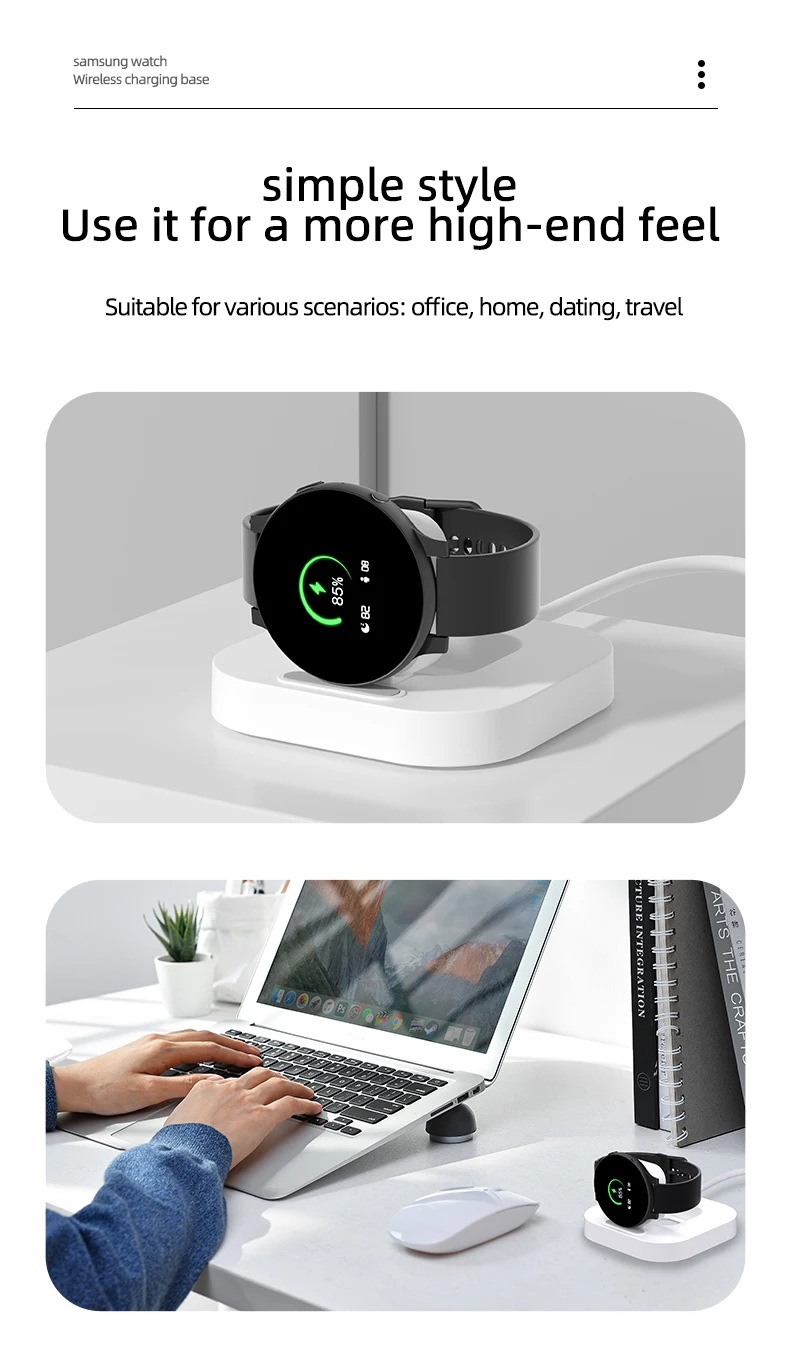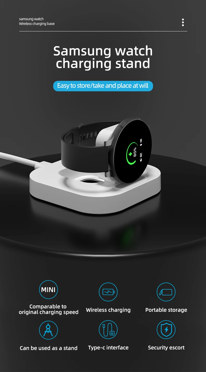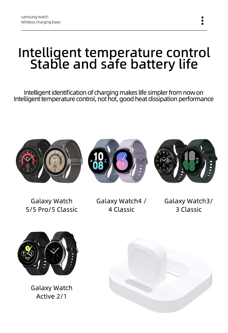 시계용으로 설계됨 조립이 필요하지 않습니다 강력한 자기 무선 충전기가 내장된 시계용 충전 스탠드입니다 시계를 에 연결하기만 하면 모든 이 완료됩니다 워치 6/5/5 /4/4Classic/3 Active 2/1 기어 S4 기어 S3 기어 S2와 호환 가능