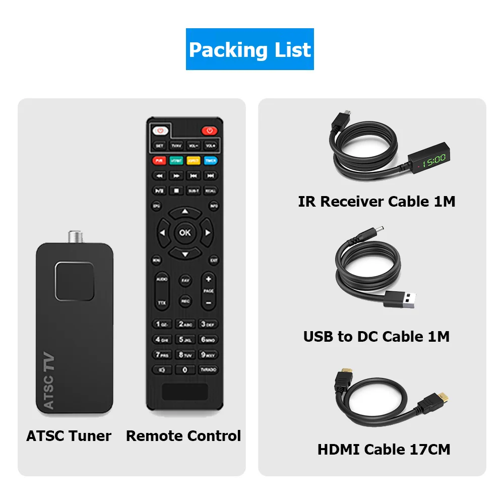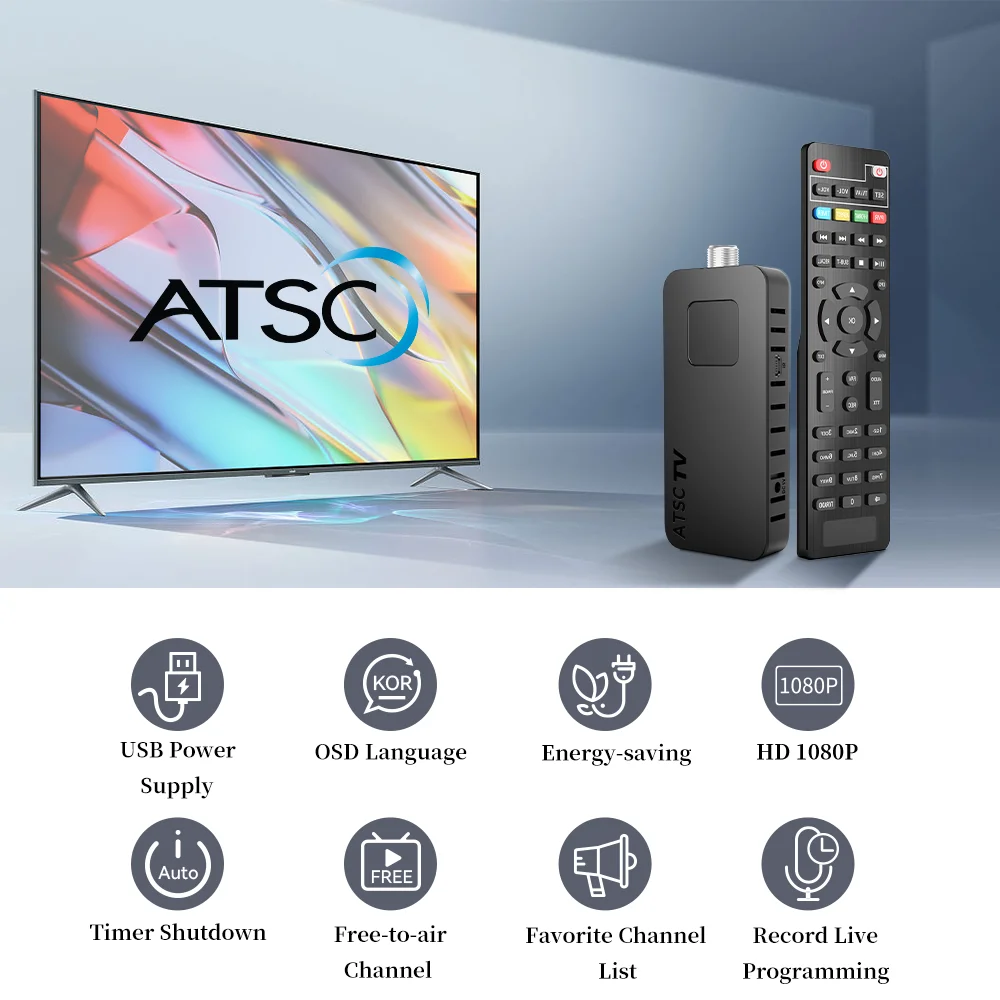 ATSC 미니 디지털 TV 컨버터 박스 HD FTA ATSC 튜너 USB 멀티미디어 PVR 녹화 EPG TV 지원 뒤에 전용