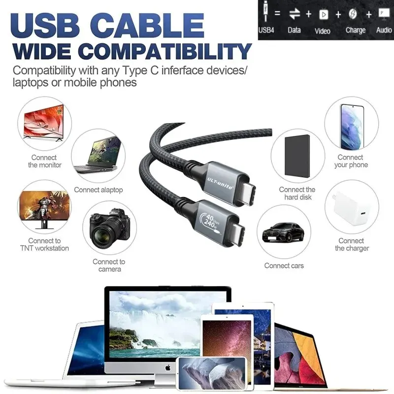 240W USB4 케이블 유형 C 고속 충전 코드 40Gbps 데이터 전송 8K60Hz 썬더 볼트 3/4 노트북 15 프로 최대 SSD