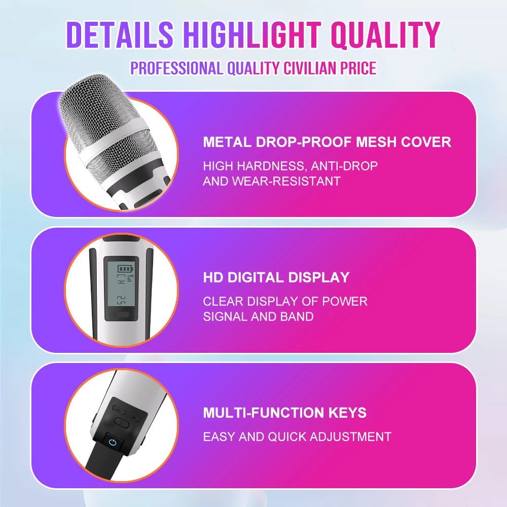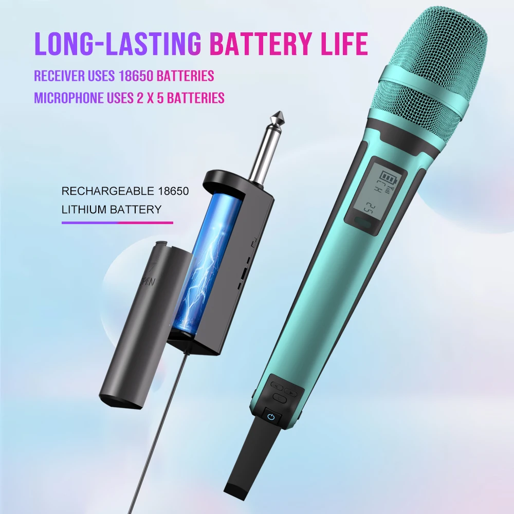알루미늄 합금 소재는 외관뿐만 라 뛰어난 내구성과 내 부식성을 제공 이 금속 튜브 본체는 매일 충돌과 긁힘을 견딜 수있어 마이크 무선이 새 것처럼 유지됩니다 야외 공연이든 실내 회의이든 손상에 대한 걱정없이 자신있게 사용
