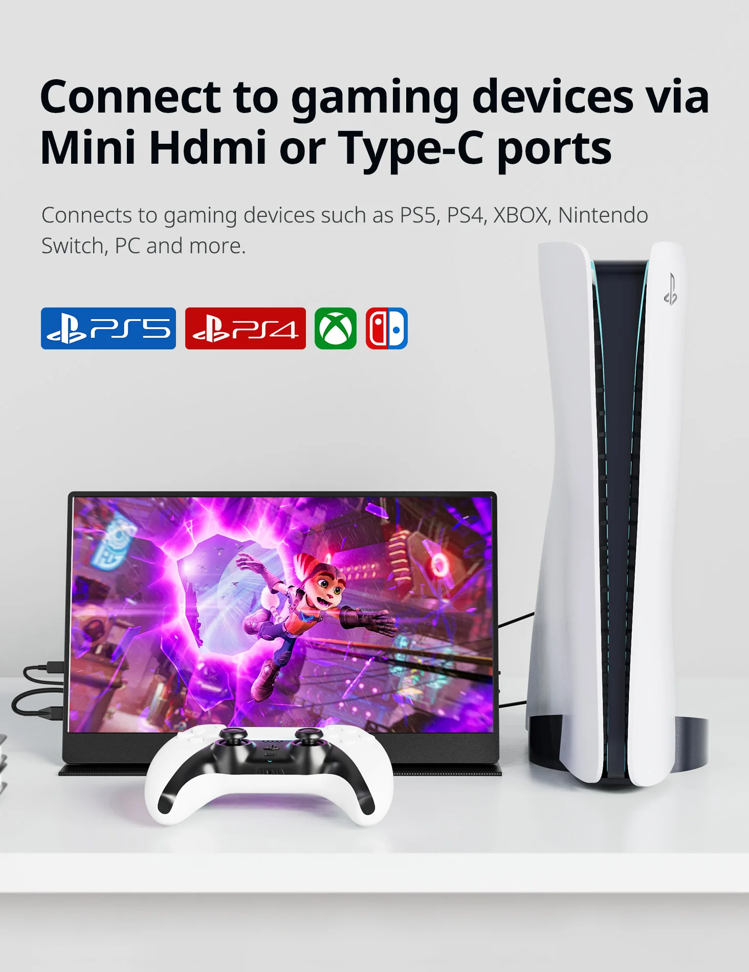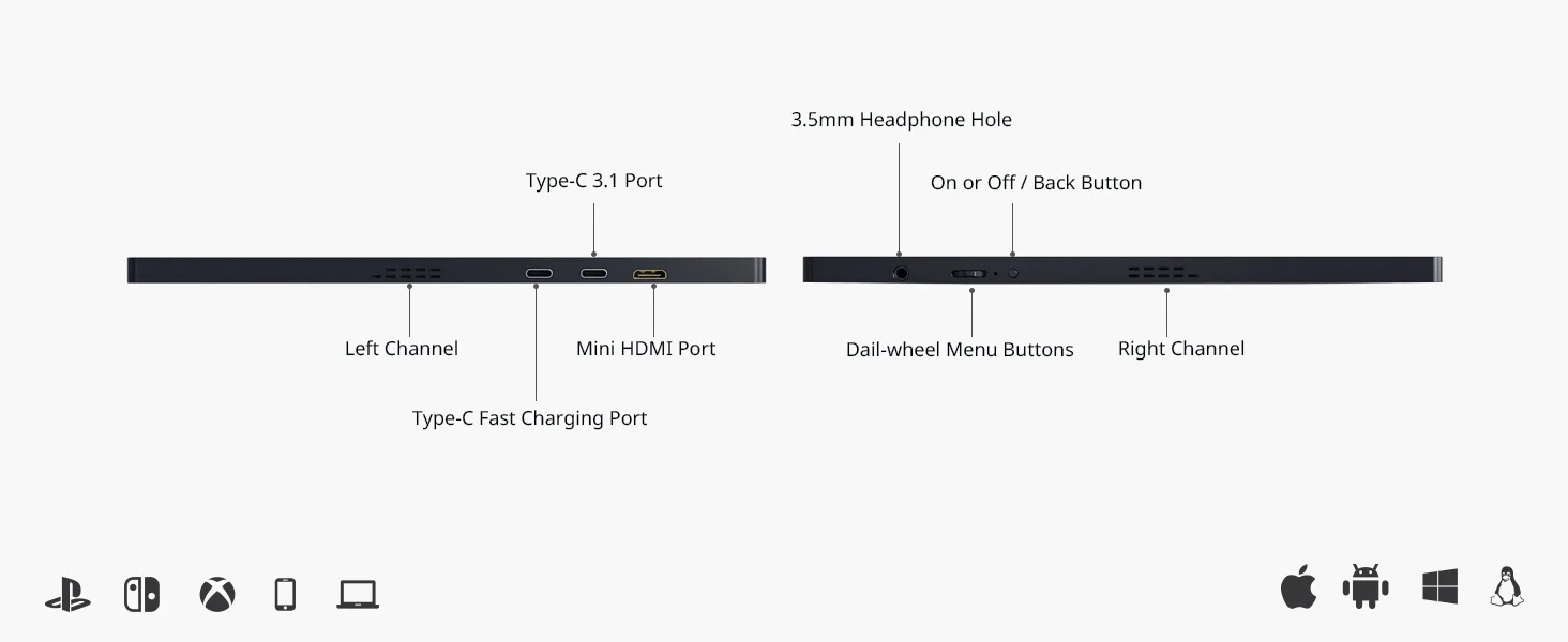 ? 다양한 호환성 이 모니터는 휴대폰 Mac 랩톱 스위치 및 미니 PC를 포함한 다양한 장치에서 원활하게 작동하도록 설계되었습니다