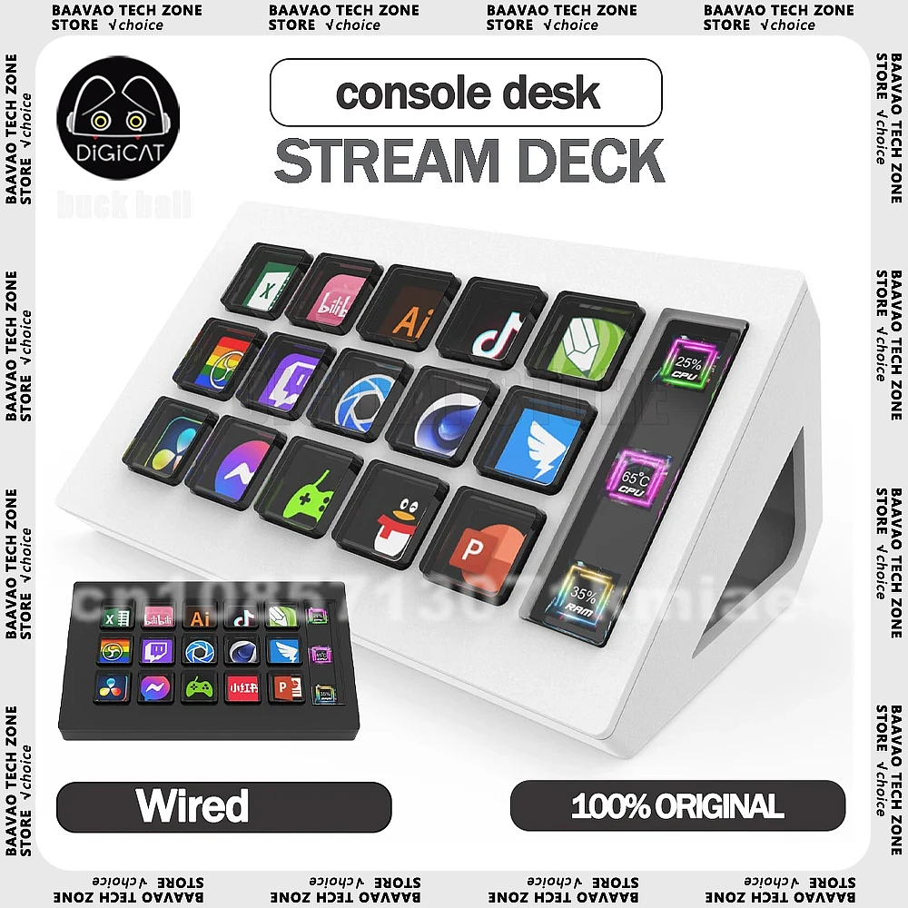 StreamDe 미니 비주얼 키보드 LCD 버튼 15키 라이브 콘텐츠 생성 컨트롤러 Windows/Ma 용 버튼 Kryboard