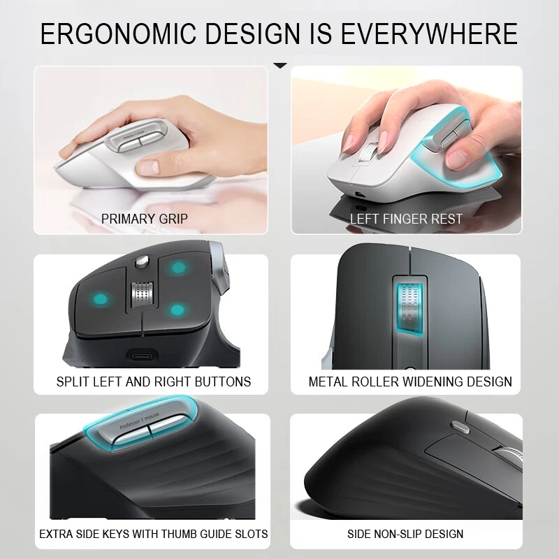 fessor1 Bluetooth 무선 마우스 3모드 연결 라이트 톤 플래그십 센서 7단 속도 조정 가능 DPI Type