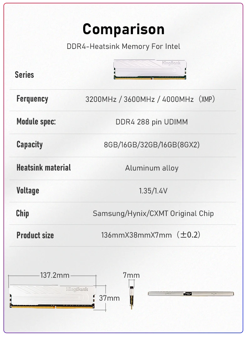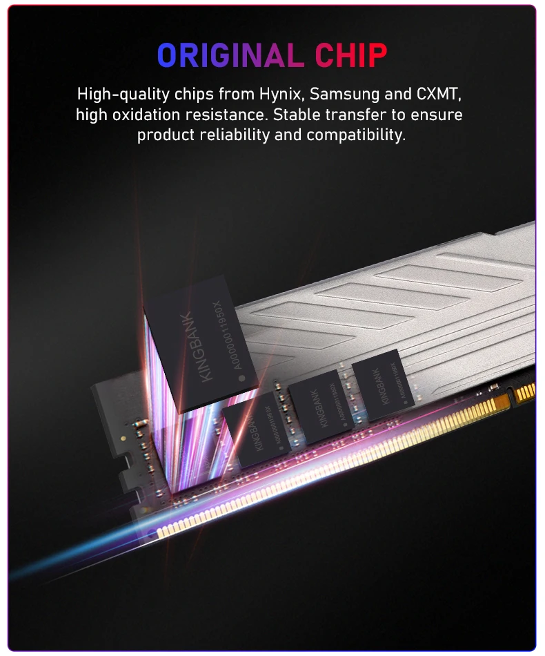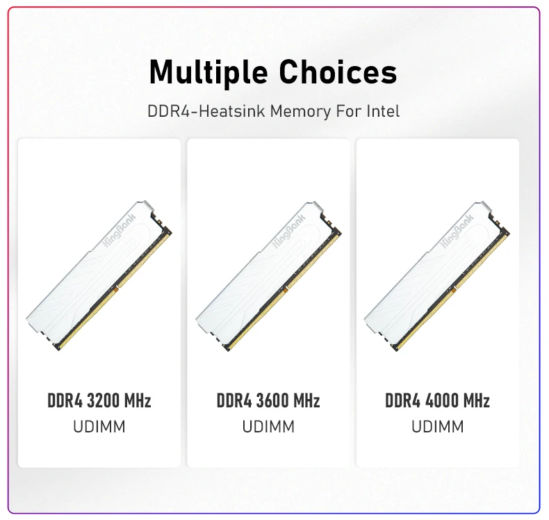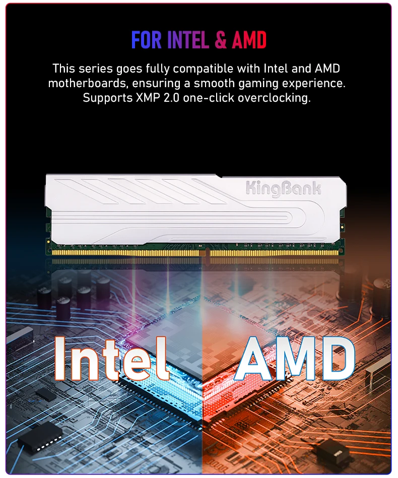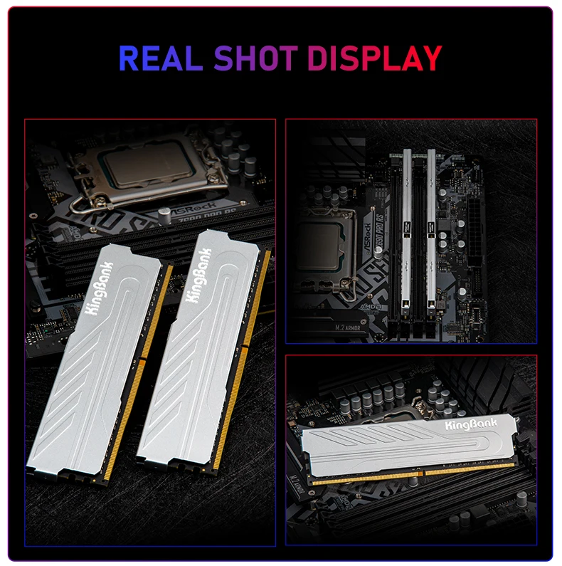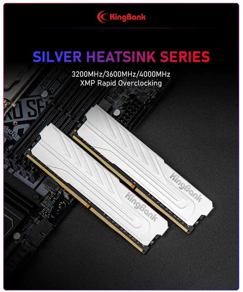 KingBank Silver Heatsink DDR4 g ng memory modules support Intel/AMD C Each 288 pin M is with gold contact fingers neatly lined in the multi layer PCB board and armored with a metal heatsink Working generally at a voltage of 1 35V the trans ssion bandwidth goes up to 25 6GB/s The memory modules feature effective heat dissi ion and stable high speed performance