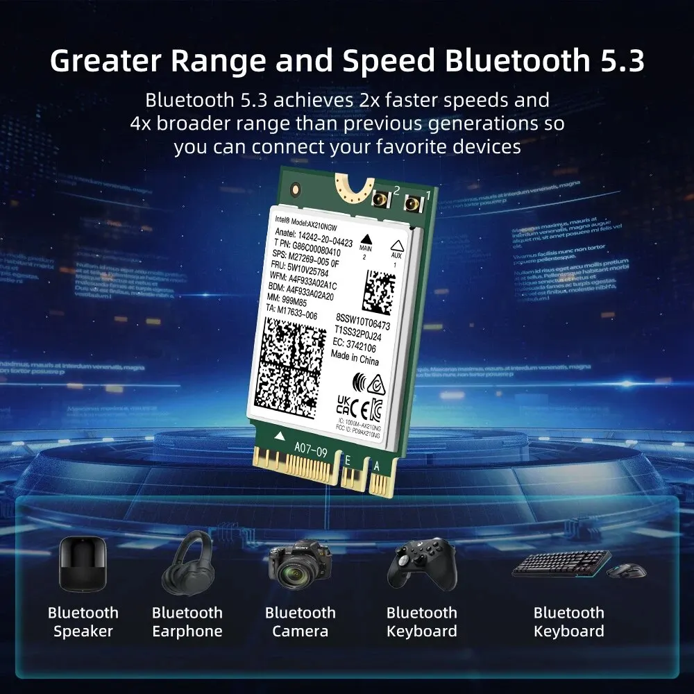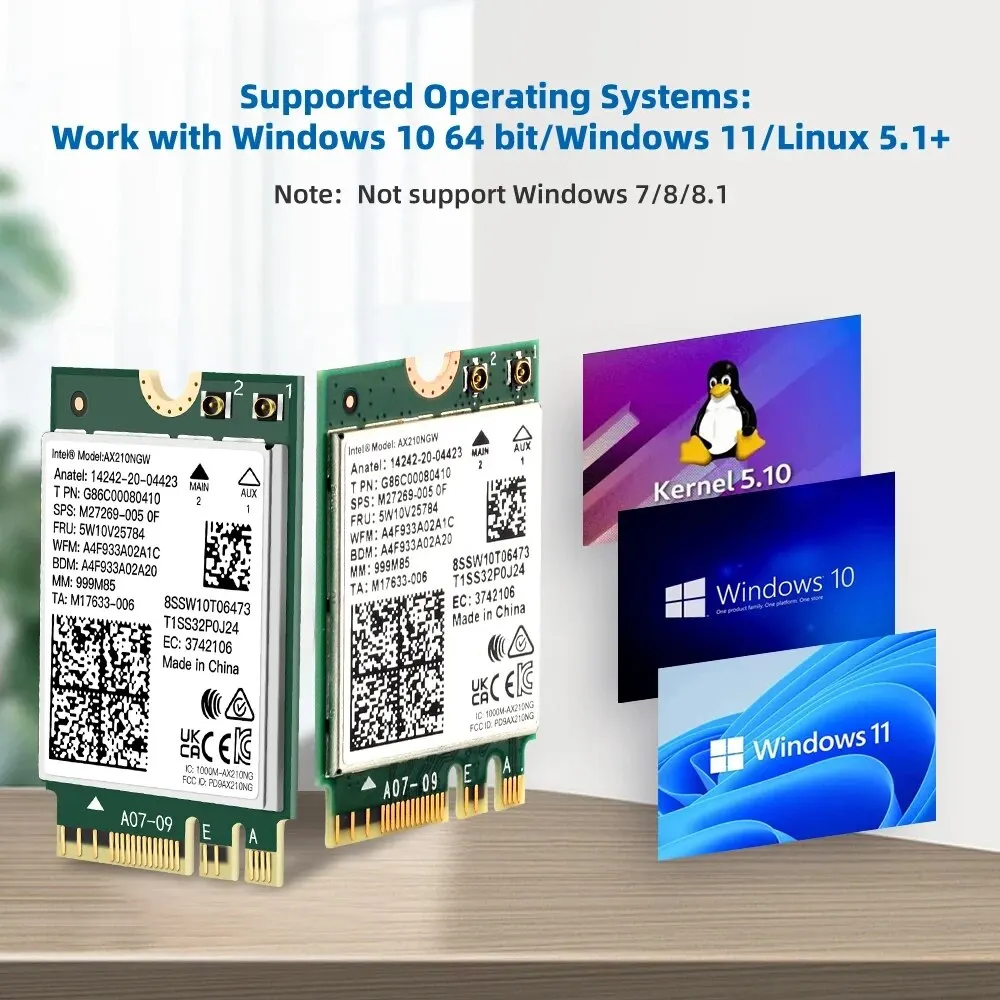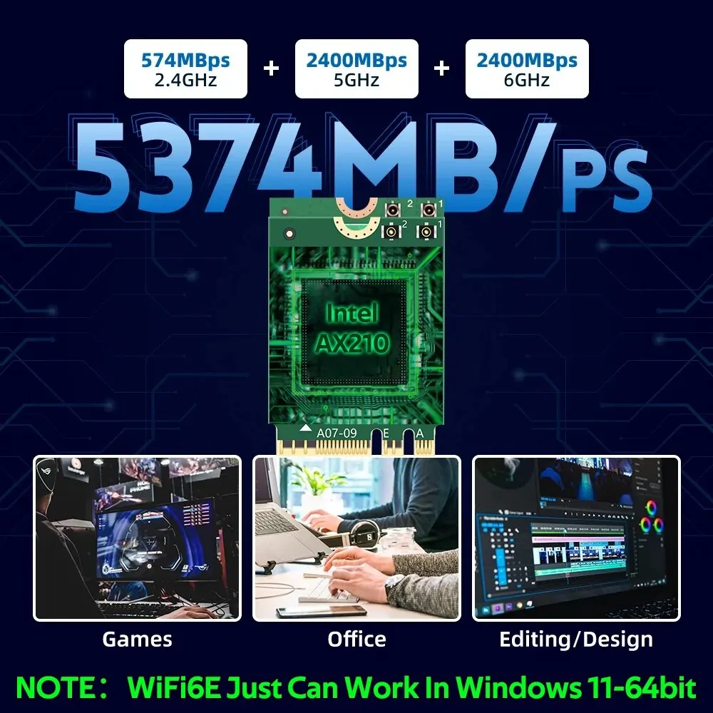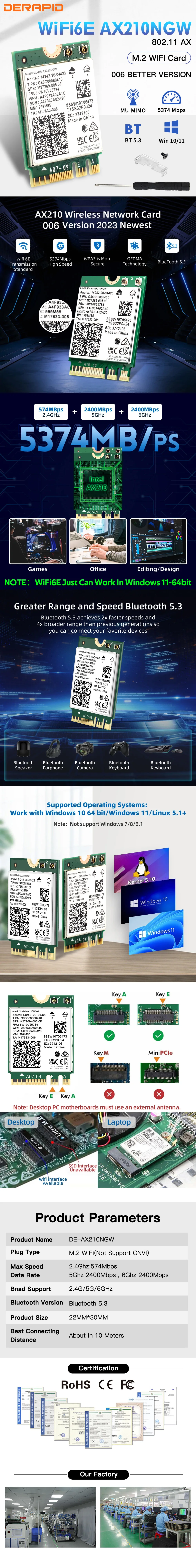 WiFi 6E AX210NGW NGFF 무선 어댑터 Bluetooth 5 3 WiFi6 5374Mbps 2 4G/5G/6GHz 802 11AX Win10/11 용