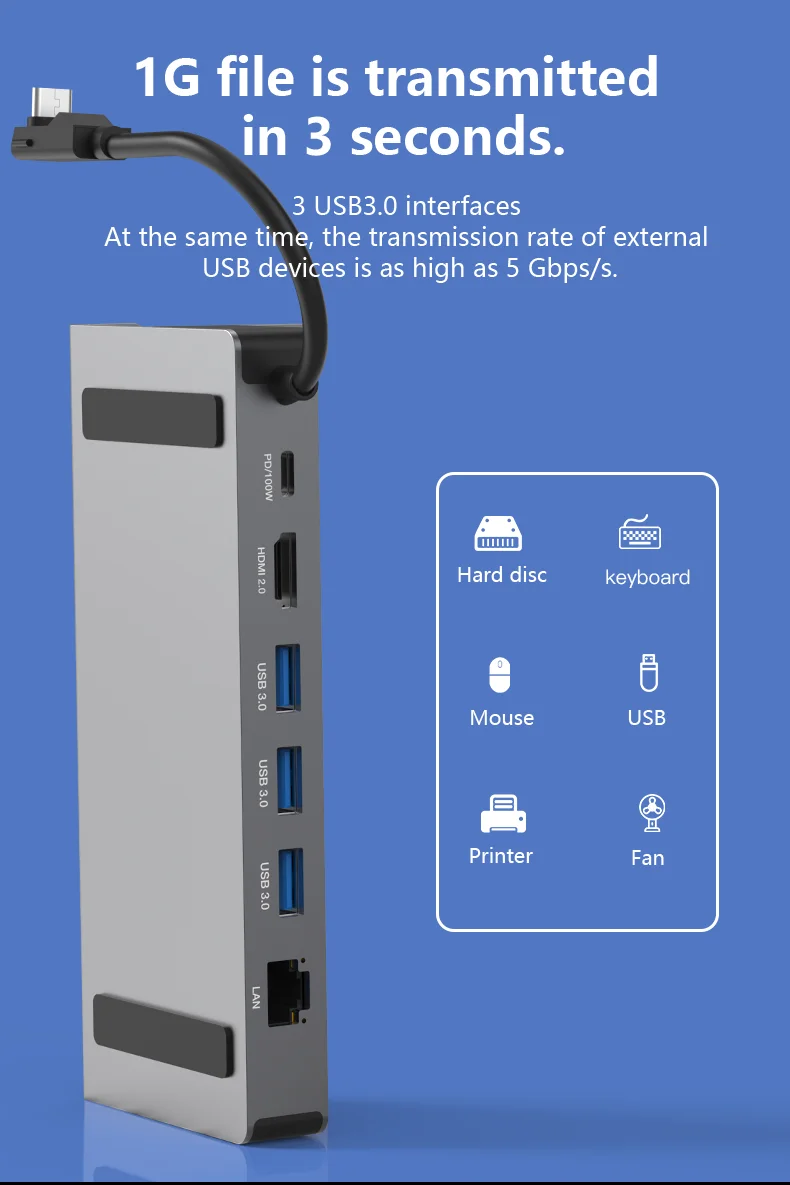 6개 포트 USB 3 0 3 유형 c PD HD 2 0 RJ45
