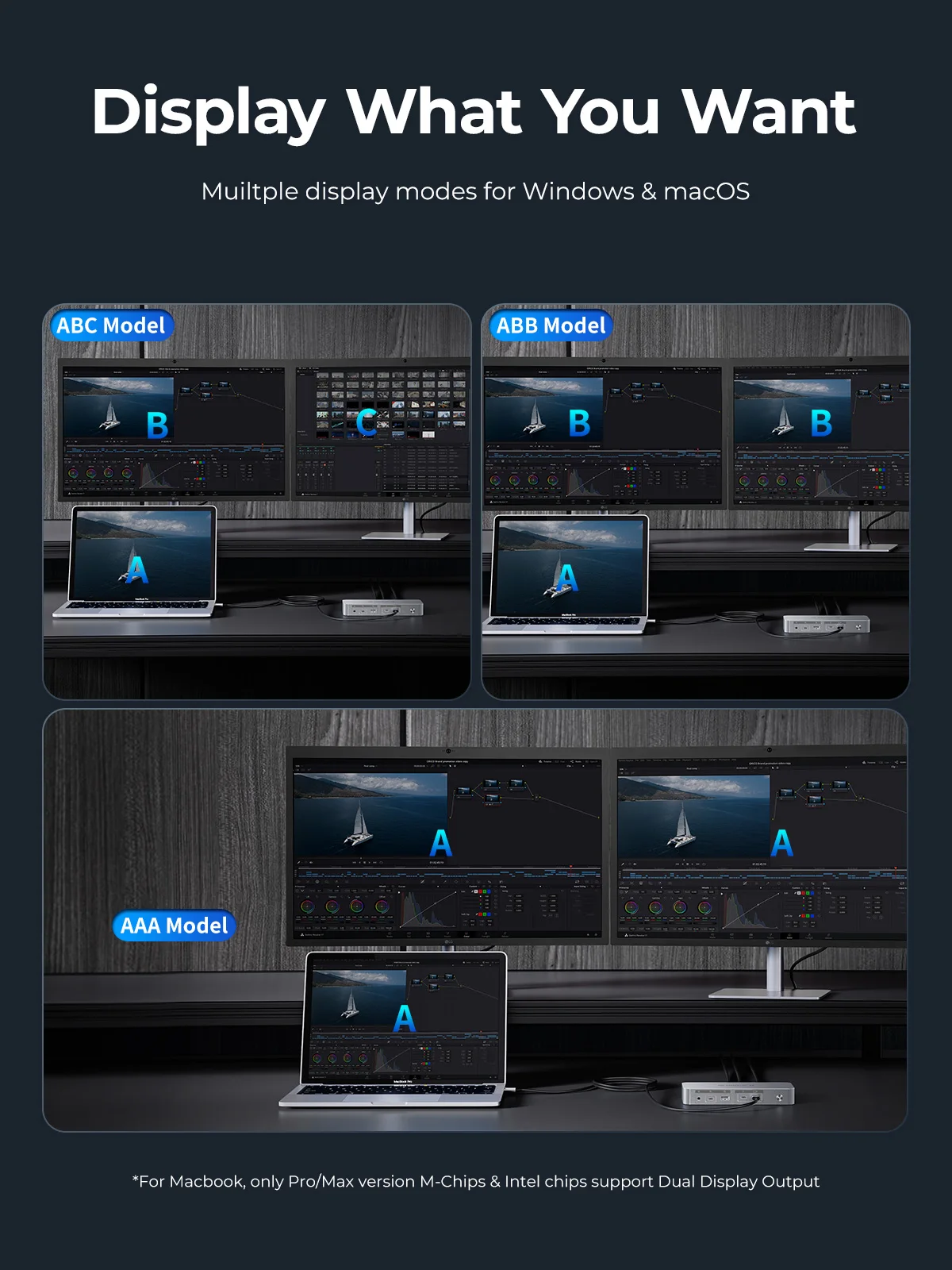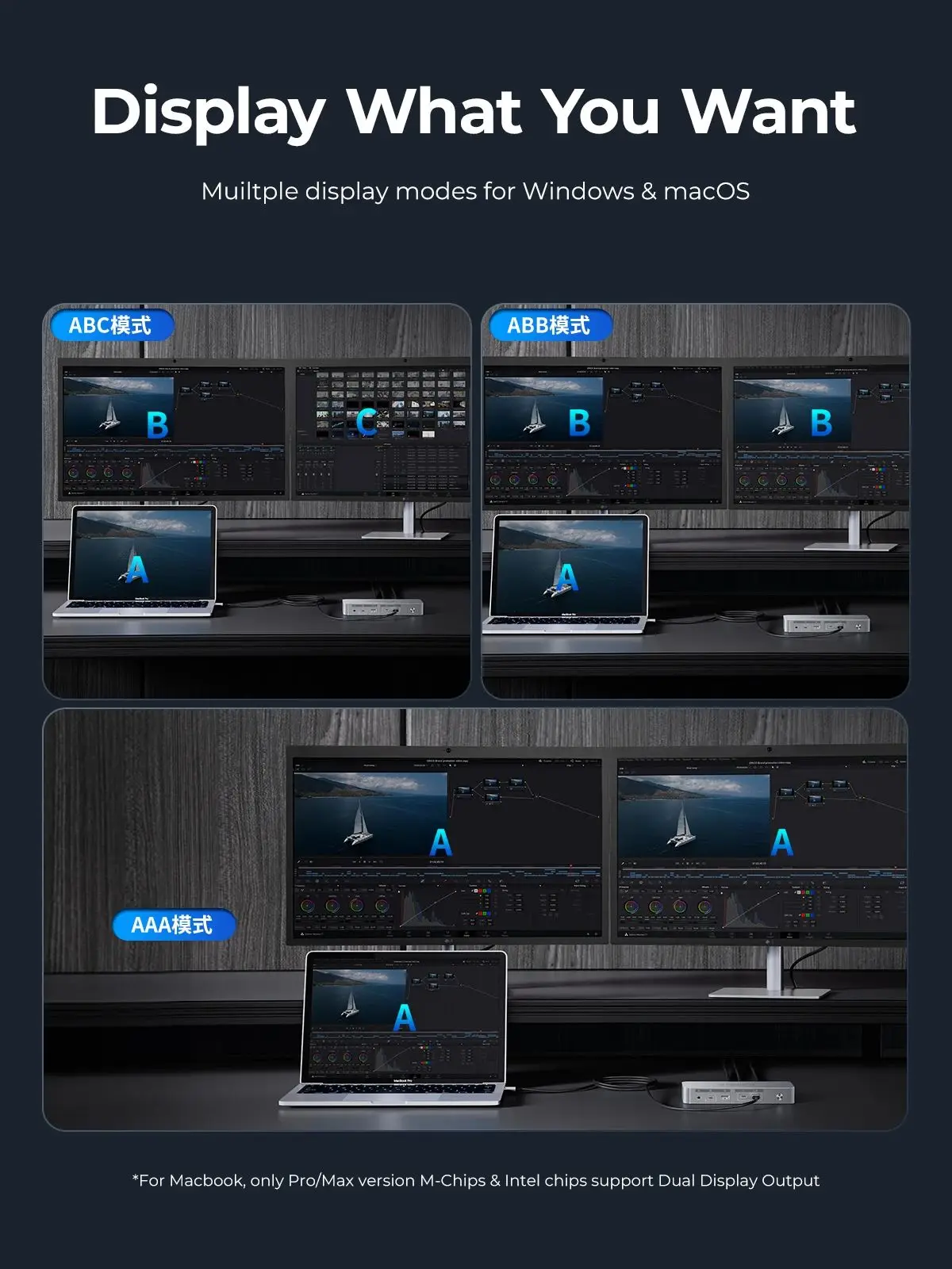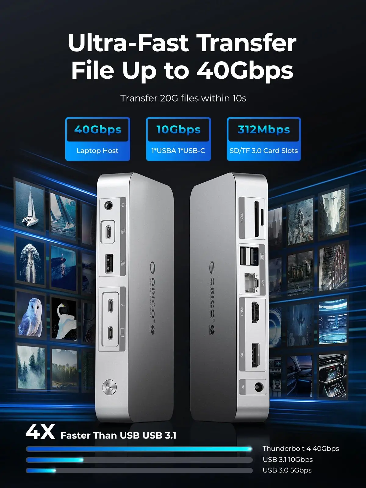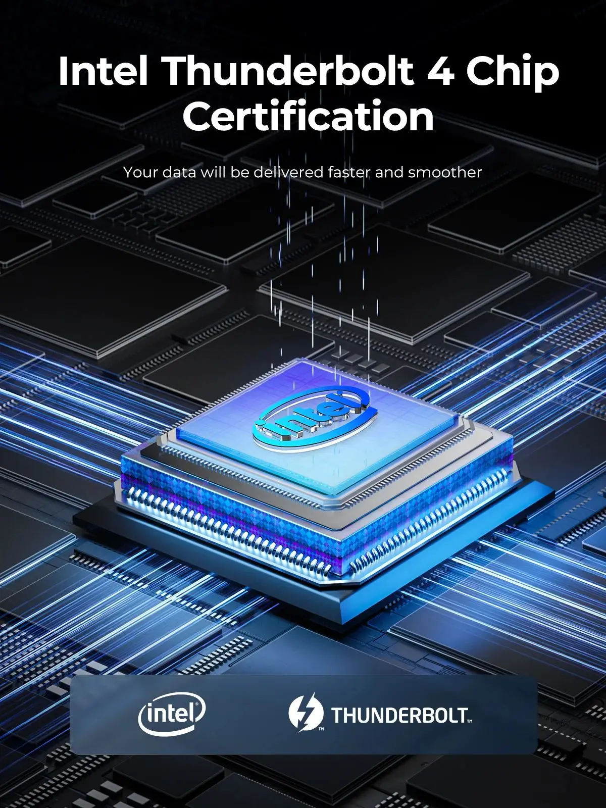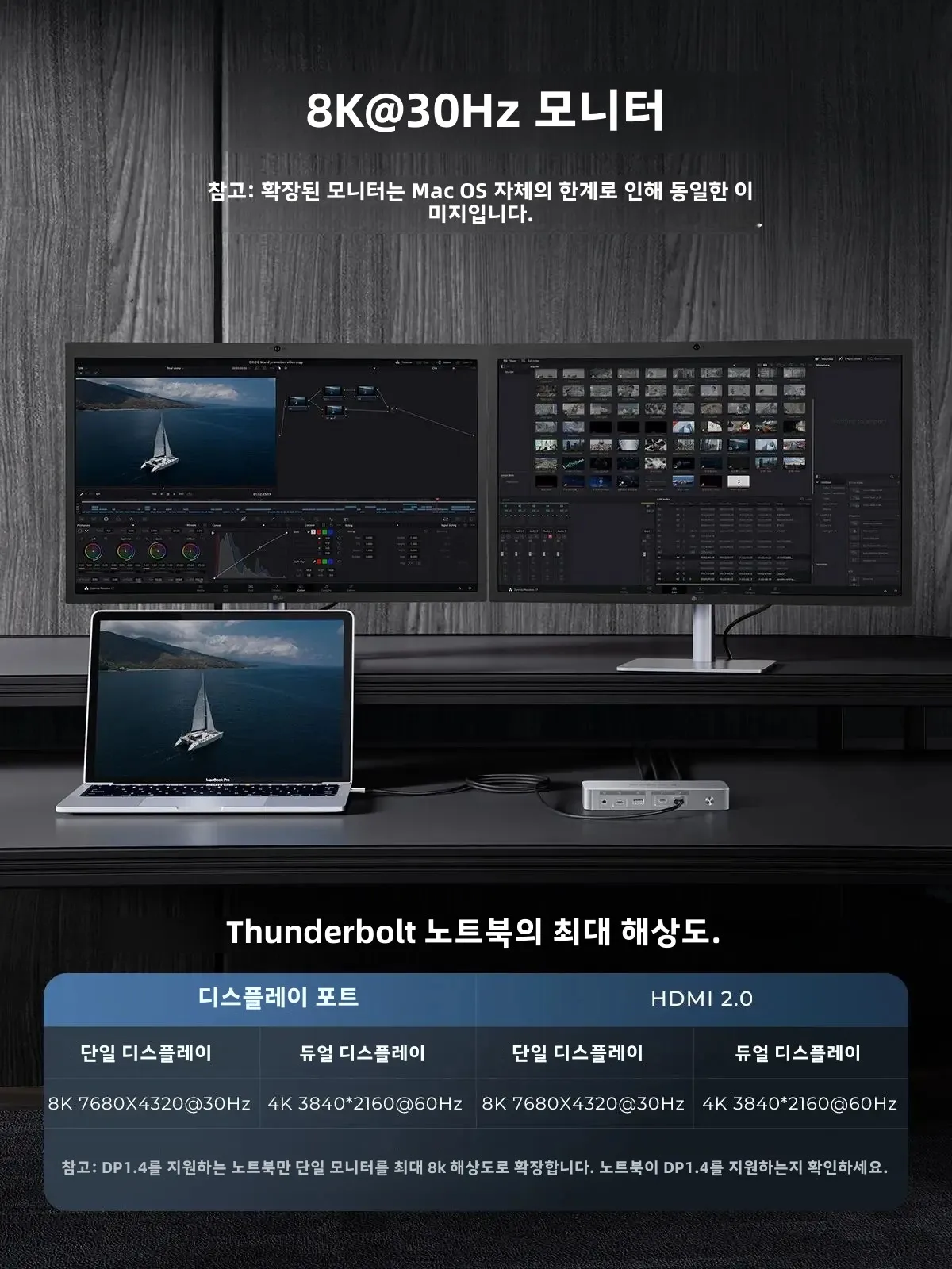 4 트리플 모니터 도킹 스테이션은 인텔 4 포트에 의해 승인되었습니다 듀얼 썬더 볼트 4 포트 8 포트 및 DisplayPort를 통해 30 K 4 Hz까지 트리플 출력 (참고 M1 칩이 장착 된 은 칩의 한계로 인해 두 모니터 만 확장 ) 지연이없고 완벽한 사운드 동기화로 디스플레이 이 우수