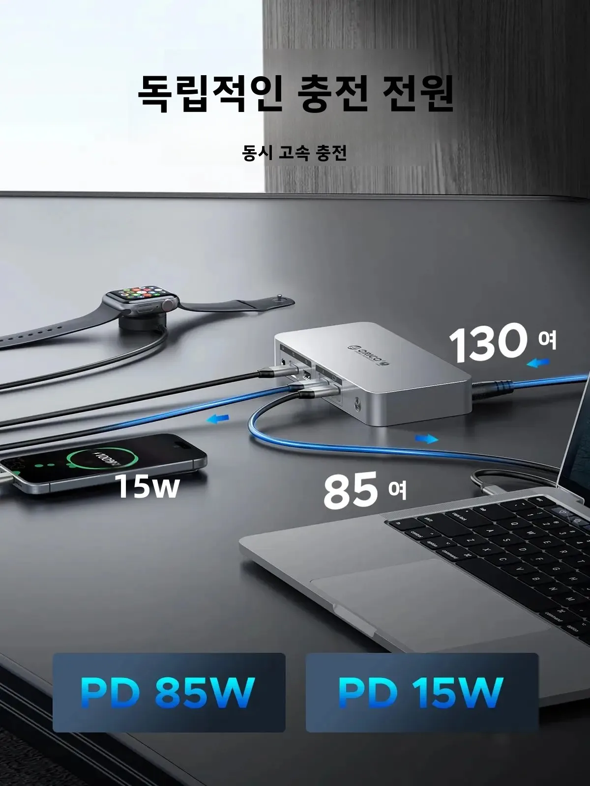 노트북 도킹 스테이션에는 20V 6 5A 충전기 1 개와 최대 130 W의 4 전원을 제공하는 벼락 4 케이블 1 개가 포함되어 전화 또는 기타 장치의 85W 충전