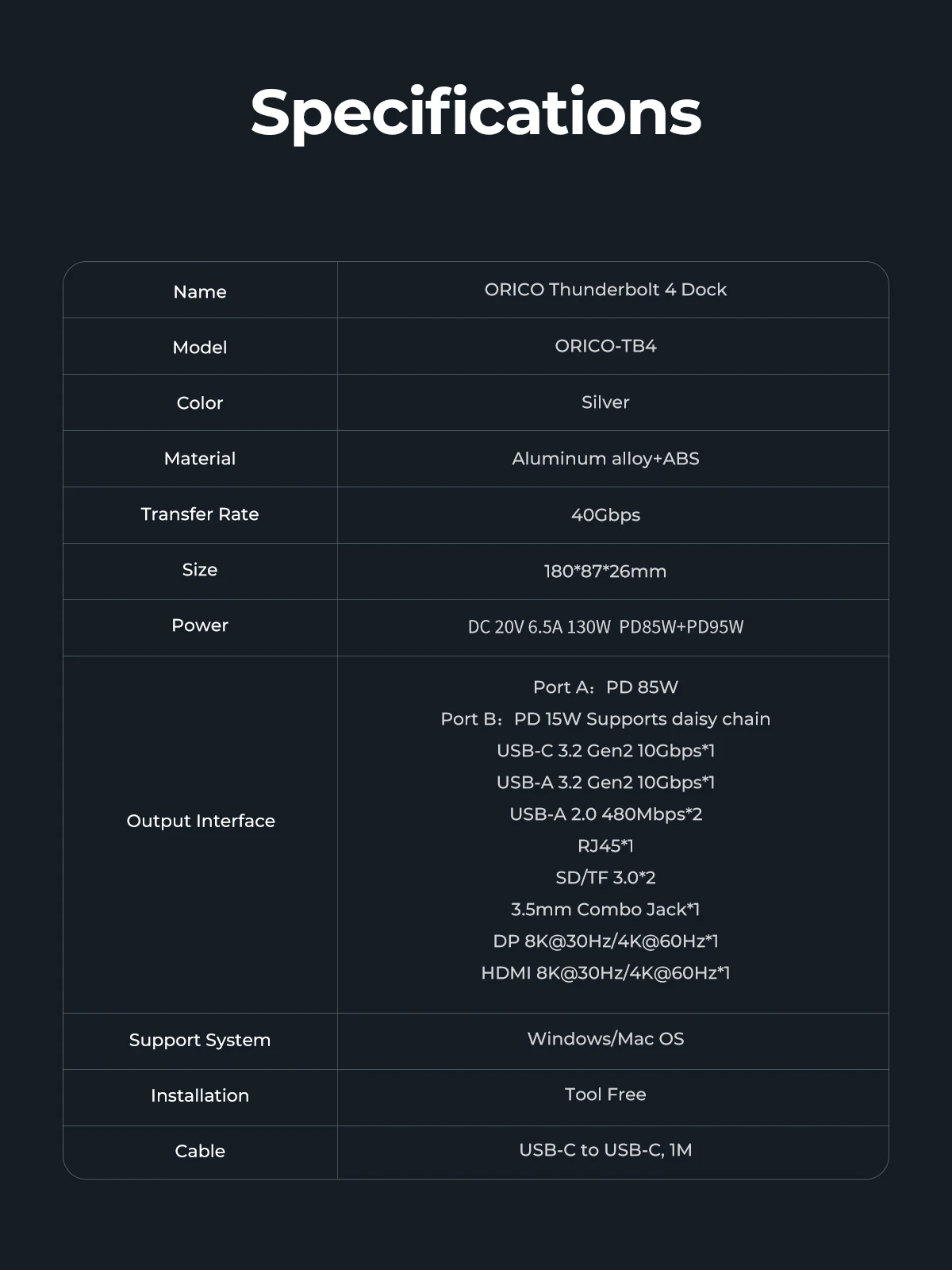 귀하의 요구를 충족시키는 벼락 4 도크 다기능 확장 랩톱을 1x 4 포트 (PD85W 40Gbps 데이터 전송용) 1x 4 포트 ( 체인 40Gbps 데이터 전송용) 1x8K 디스플레이 포트로 확장 1x8K HD 호환 1xUSB C 3 2 Gen2 포트 (10Gbps) 1xUSB A 3 2 Gen2 포트 (10Gbps) 2xUSB 2 0 포트 기가비트 이더넷 SD/ TF 포트 3 5mm 오디오/ cr 포트