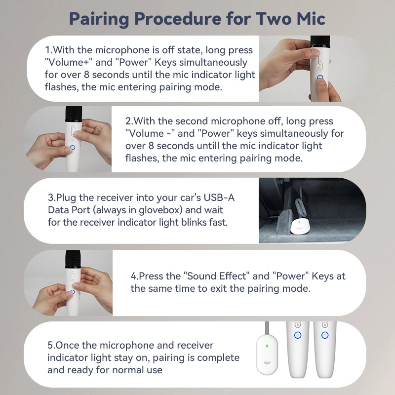 모델 Y/3/X/사이버트럭용 T1 Car 노래방 마이크 USB A USB C 수신기가 있는 충전식 노래방 마이크 플러그