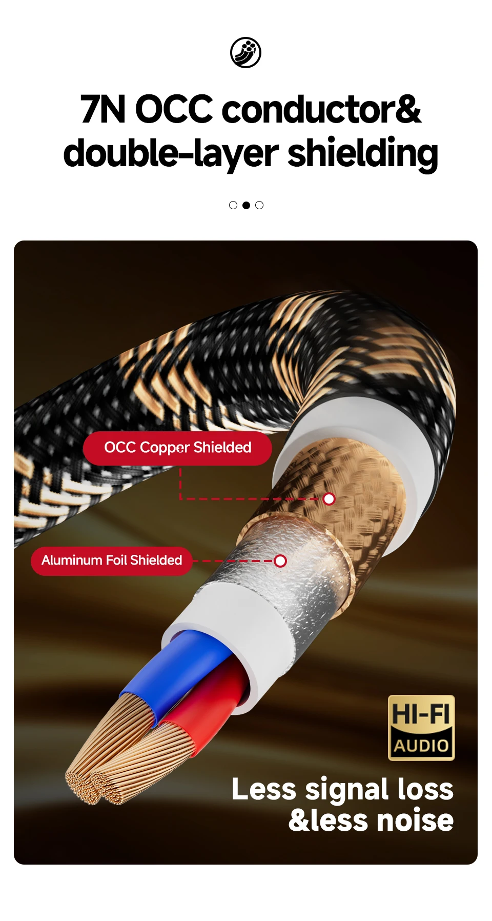1 케이블은 7N 단결정 구리 도체로 만들어졌으며 신호 손실이 매우 낮고 신호 전송이 매우 안정적이며 풍부한 사운드 디 을 유지하여 현장에 있는 듯한 느낌을 줍니다