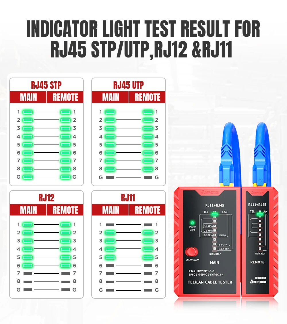 가정 설치 테스터는 Cat7 Cat6 및 Cat5 RJ45 네트워크 케이블 및 RJ11 전화 케이블에 홈 네트워크 설치 및 패치 코드 제작 시 널리 사용됩니다 전기 기술자 IT 기술자 또는 아마추어와 같은 가이든 이더넷 소켓 카메라 또는 기타 장치에 사용