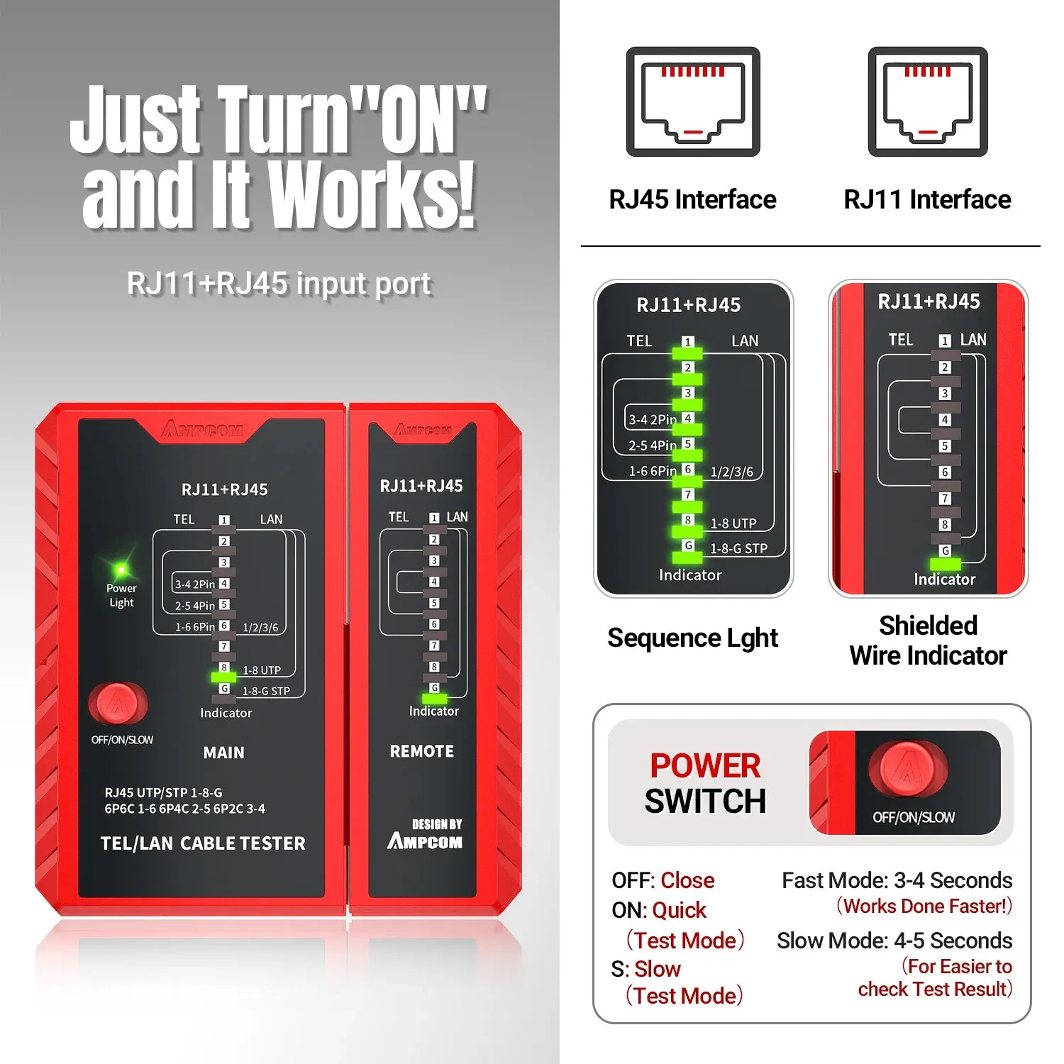 RJ45 RJ11 자동 테스터 (슬로우/패스트 모드)