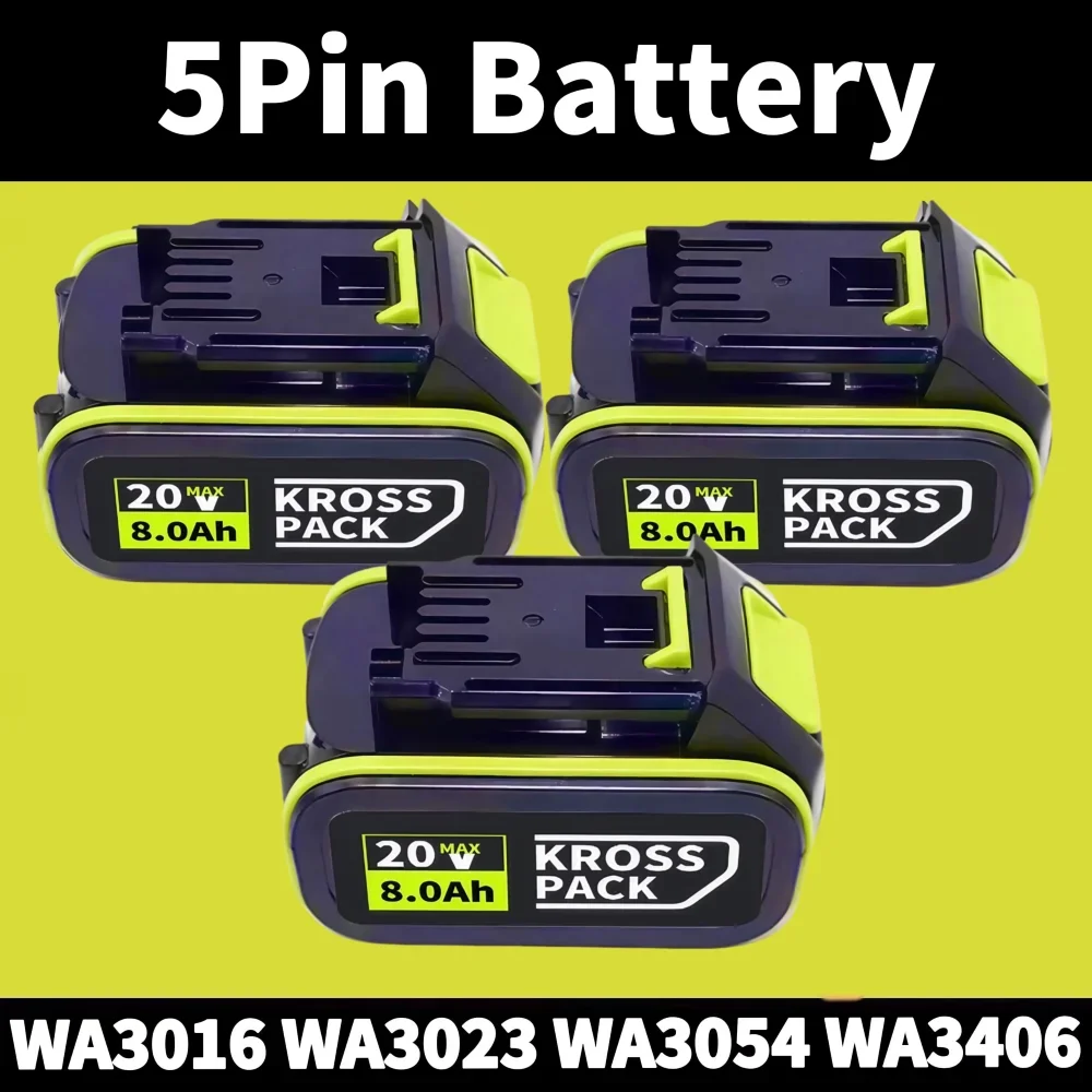 WA3553 20V 무선 전동 공구 배터리 WA3572 WA3553 WX390 WA3551 WX176 WX178 예비 배터리 용 8000mAh 배터리