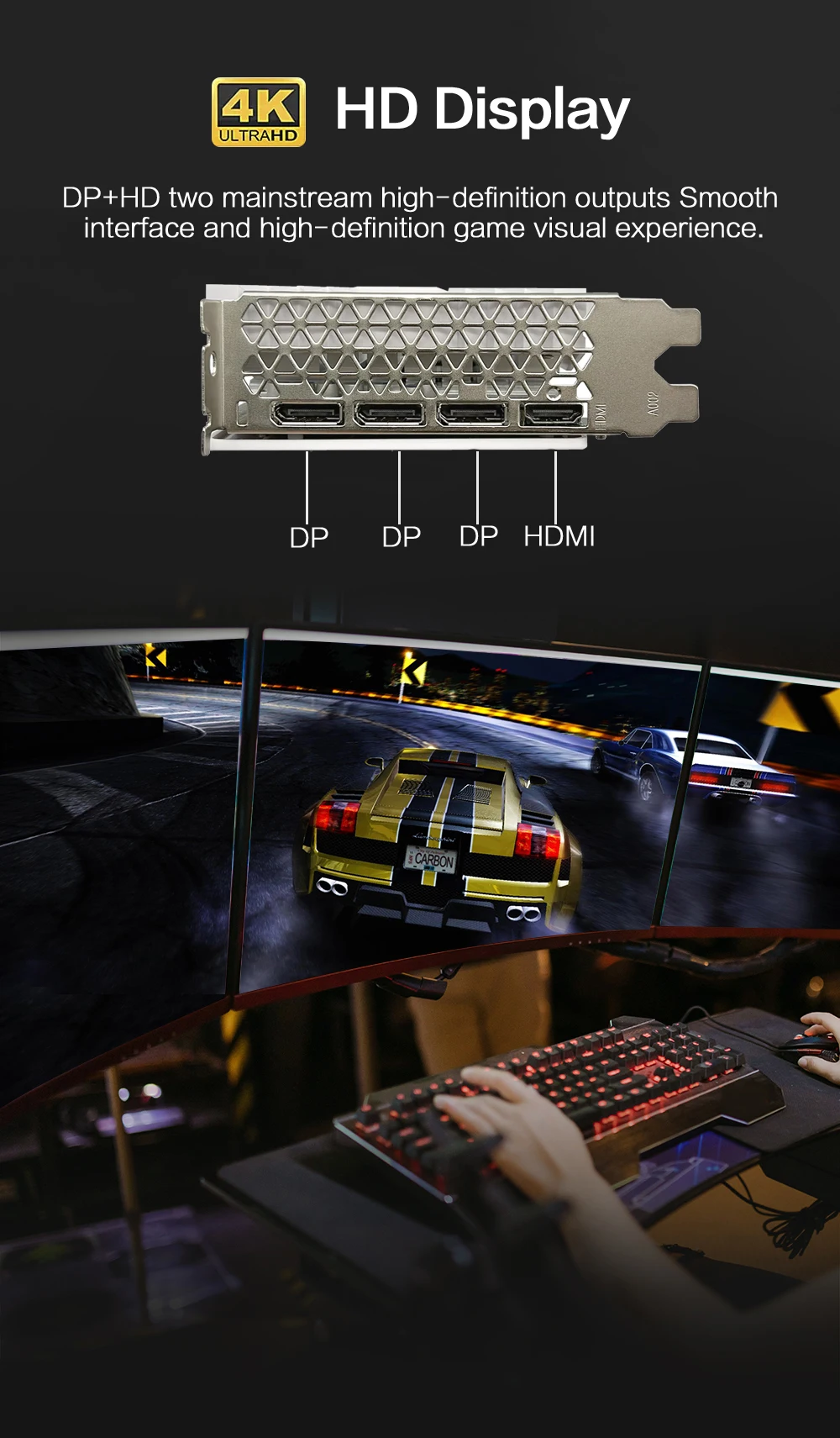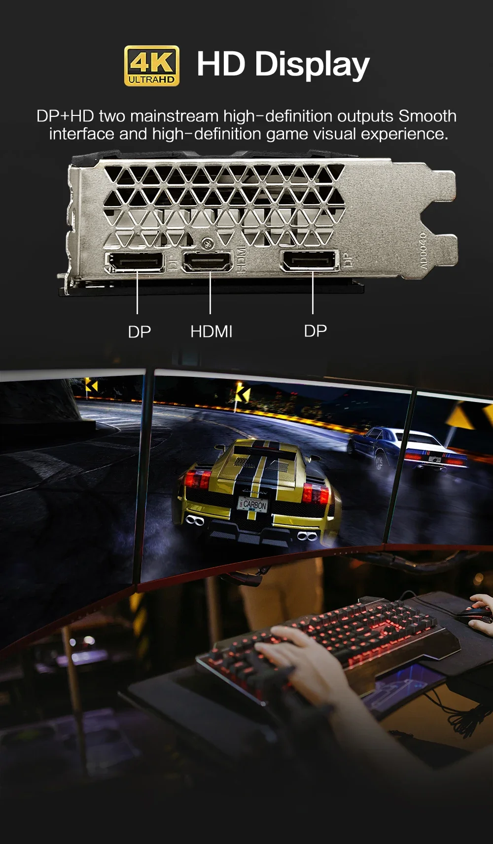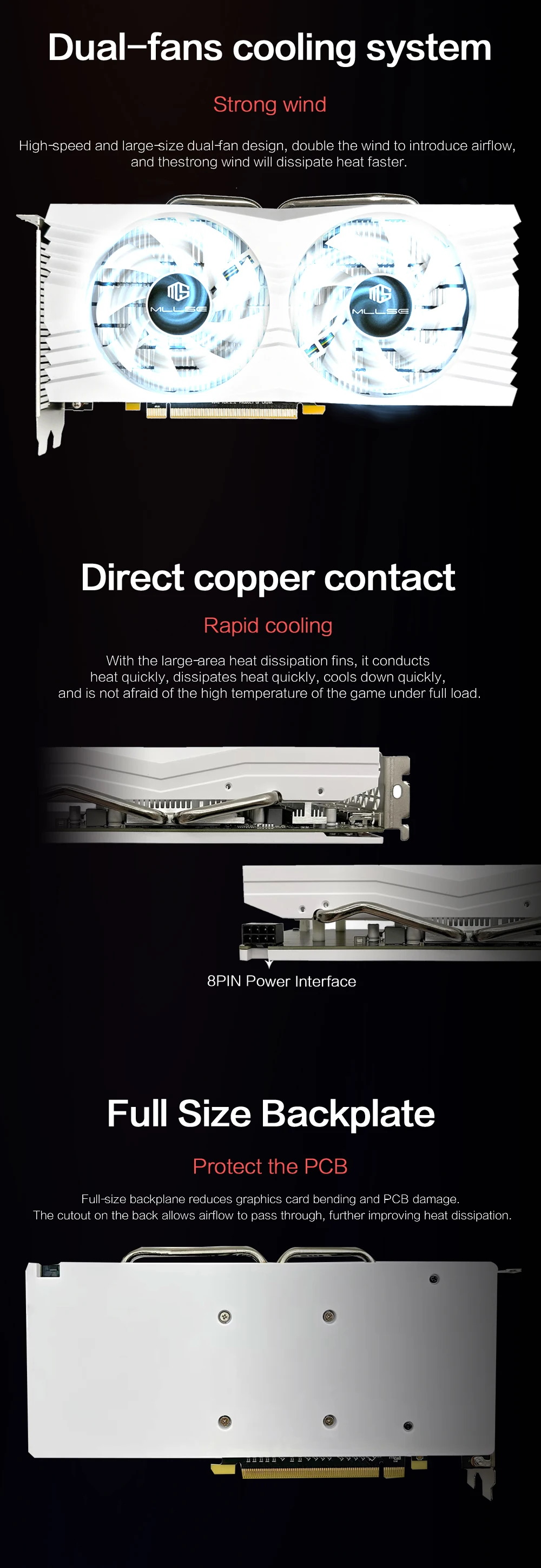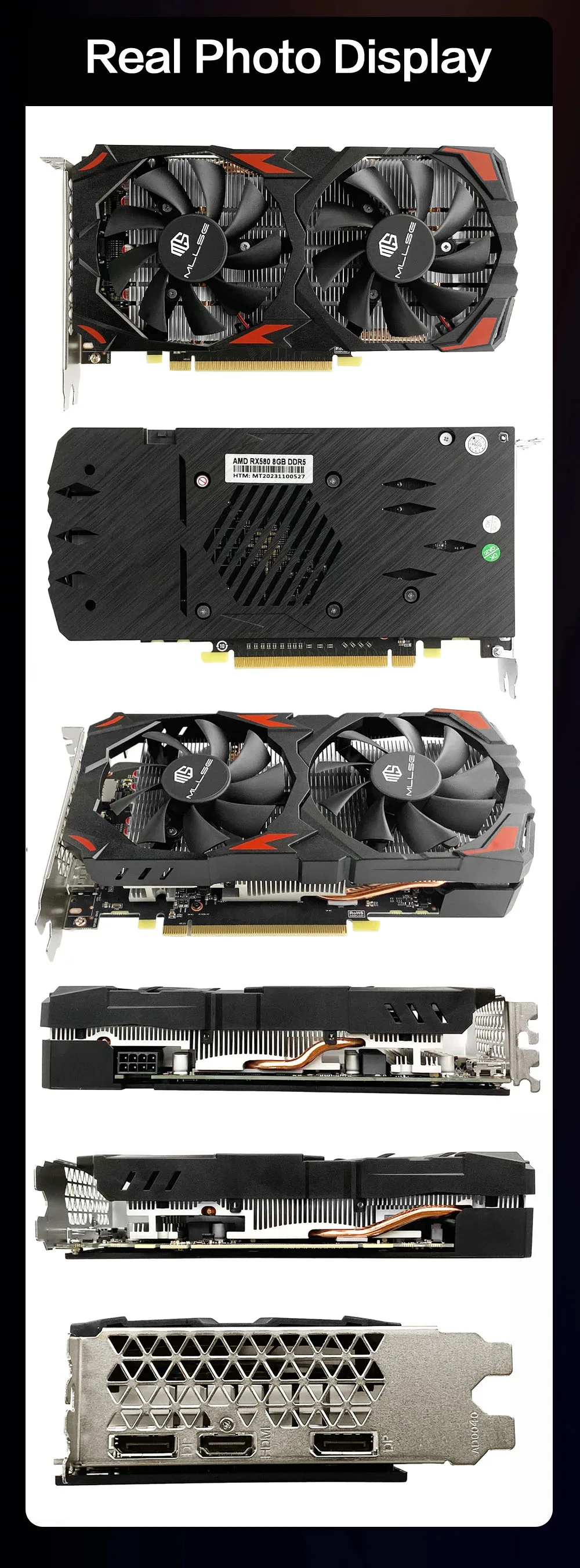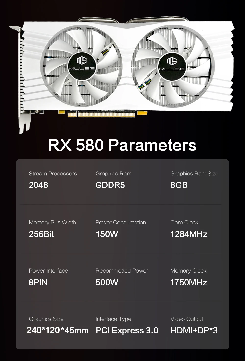 ? 강력한 G MLLSE AMD RX 580 8GB 2048SP 게임 그래픽 카드는 강력한 AMD RX 580 칩 프로세서를 갖추고있어 부드럽고 효율적인 그래픽 성능을
