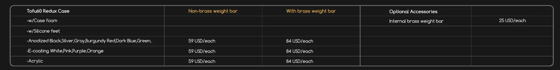 Tofu60 Redux 케이스에는 기본적으로 내부 s 웨이트 바가 함께 제공되지 않습니다