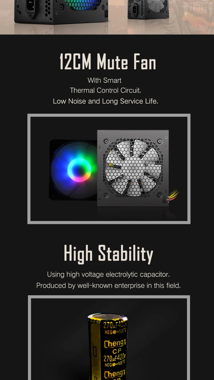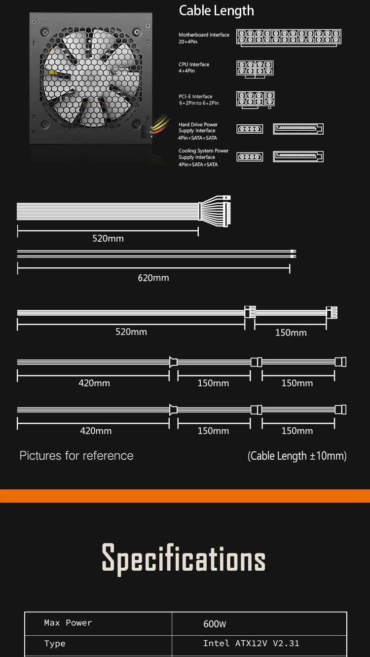 Aigo AK 600W PC PSU 전원 공급 장치 블랙 게임용 조용한 120mm rgb 팬 24핀 12V ATX 데스크탑 컴퓨터 BTC용 전원 공급 장치