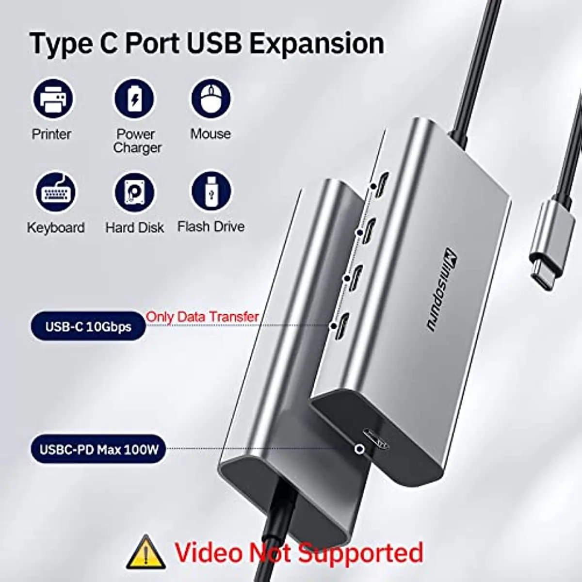 USB C 허브는 단일 Type C 포트를 최대 10Gbps의 USB C 포트 4개로 확장하여 쉽고 빠르게 데이터를 전송하거나 백업