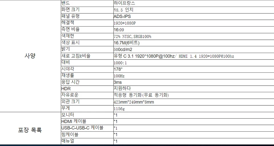 | 디스플레이 크기 | 18.5 인치 |