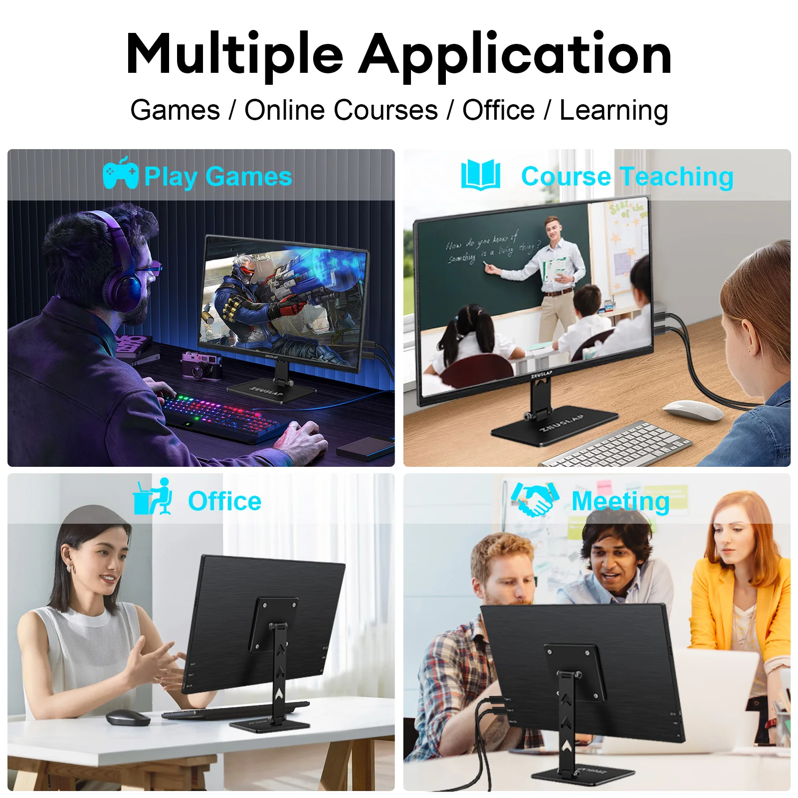 ZEUSLAP 회전 휴대용 모니터 데스크 VESA 마운트 모니터용 금속 스탠드 홀더