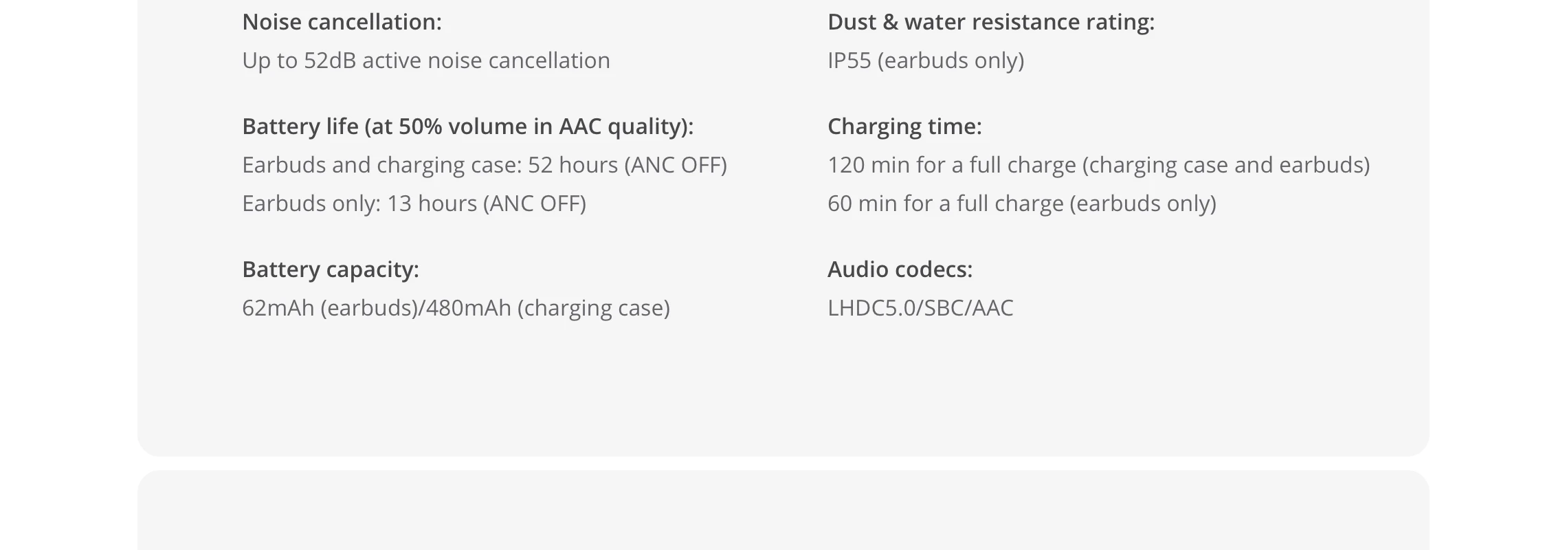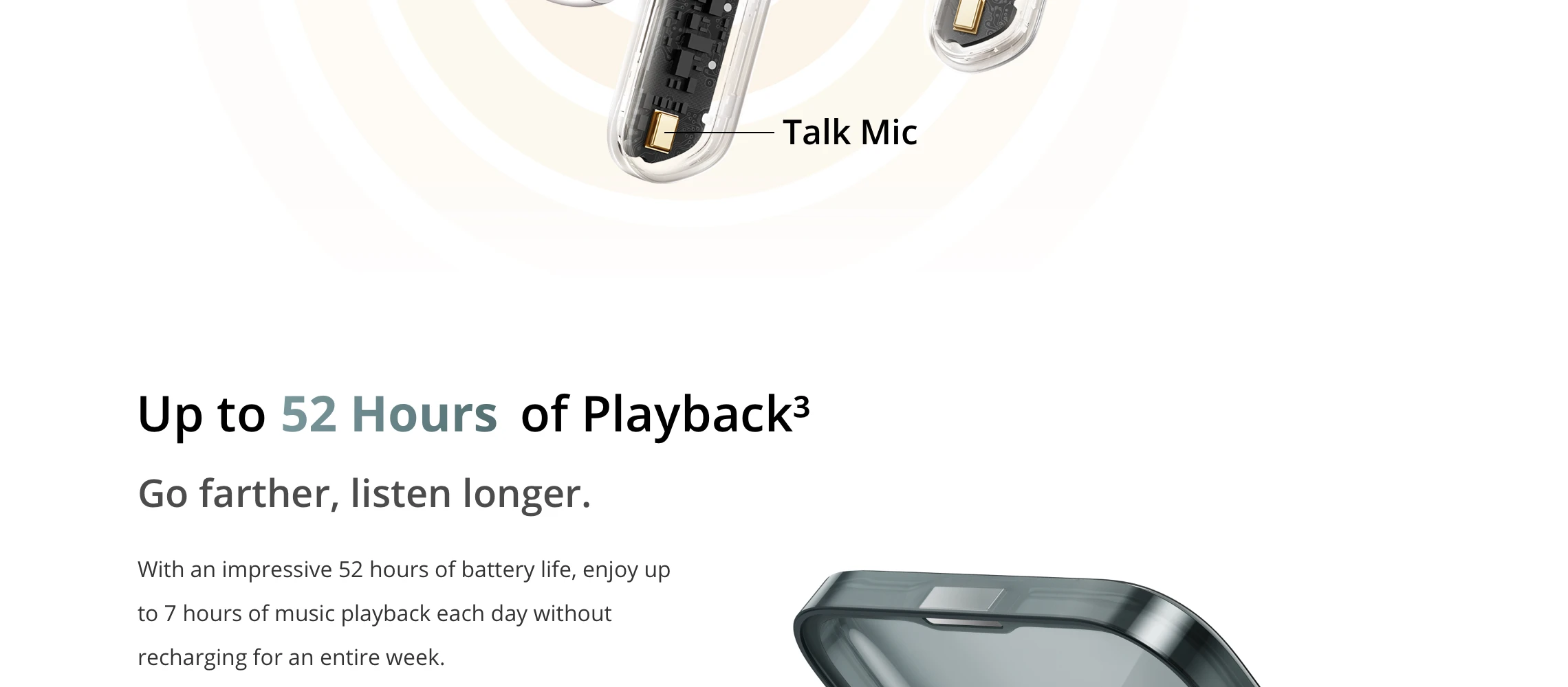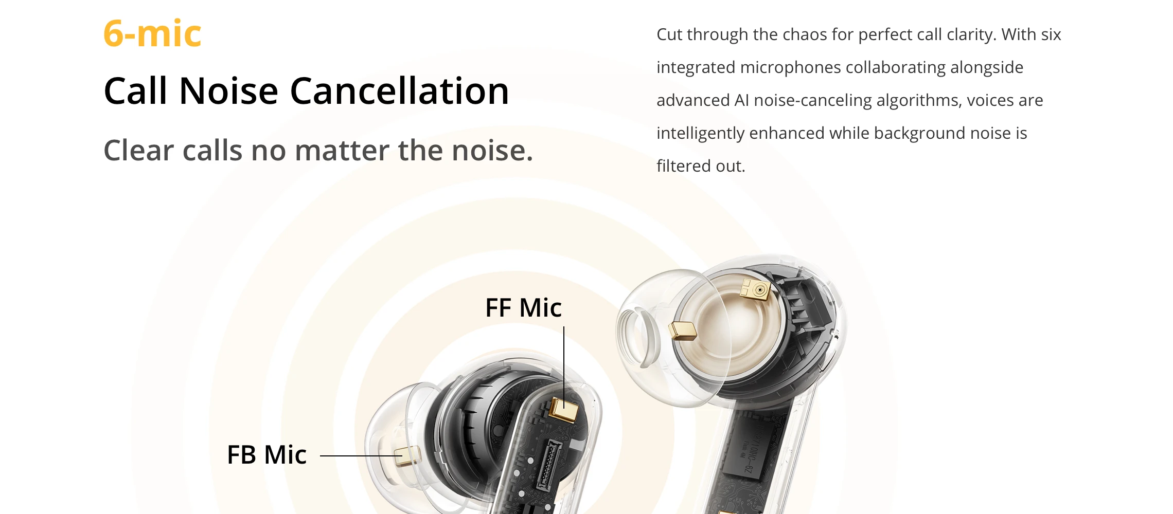 소음 제거 최대 52dB/4kHz 스마트 활성 소음 제거 6마이크 통화 소음 제거