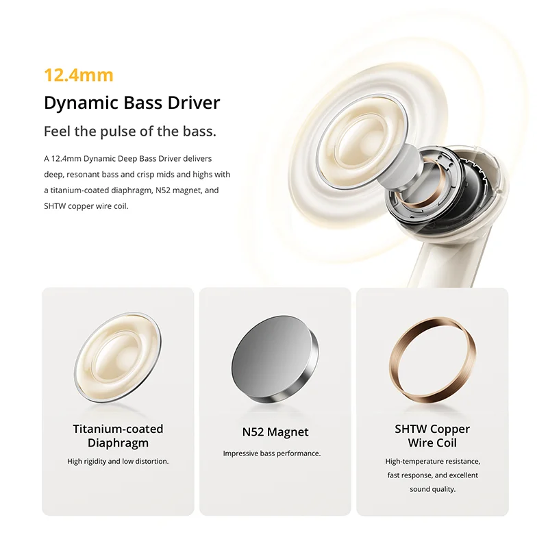 52dB 소음 제거 12 4mm 딥 베이스 드라이버 52시간의 배터리 수명