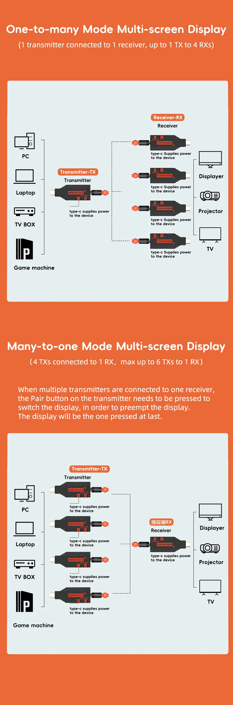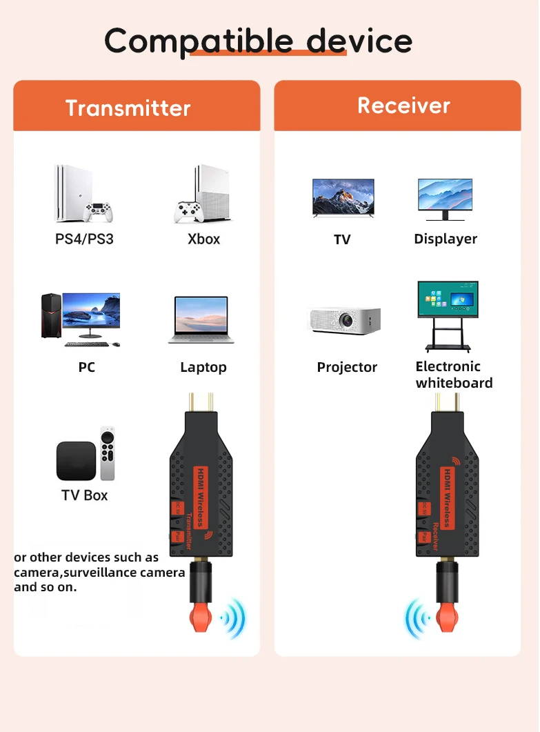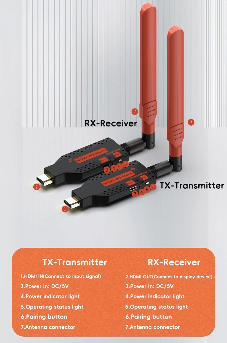 이 HD 확장기에는 무선 전송 프로토콜이 내장되어 있어 HD 오디오 및 비디오 신호를 무선으로 전송