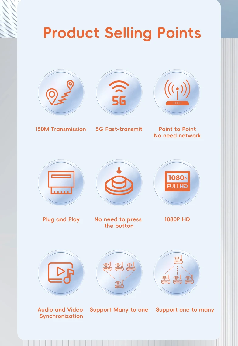 1 내장된 무선 전송 프로토콜을 통한 HD 비디오 및 오디오 전송 Wi Fi 또는 인터넷 필요 없음