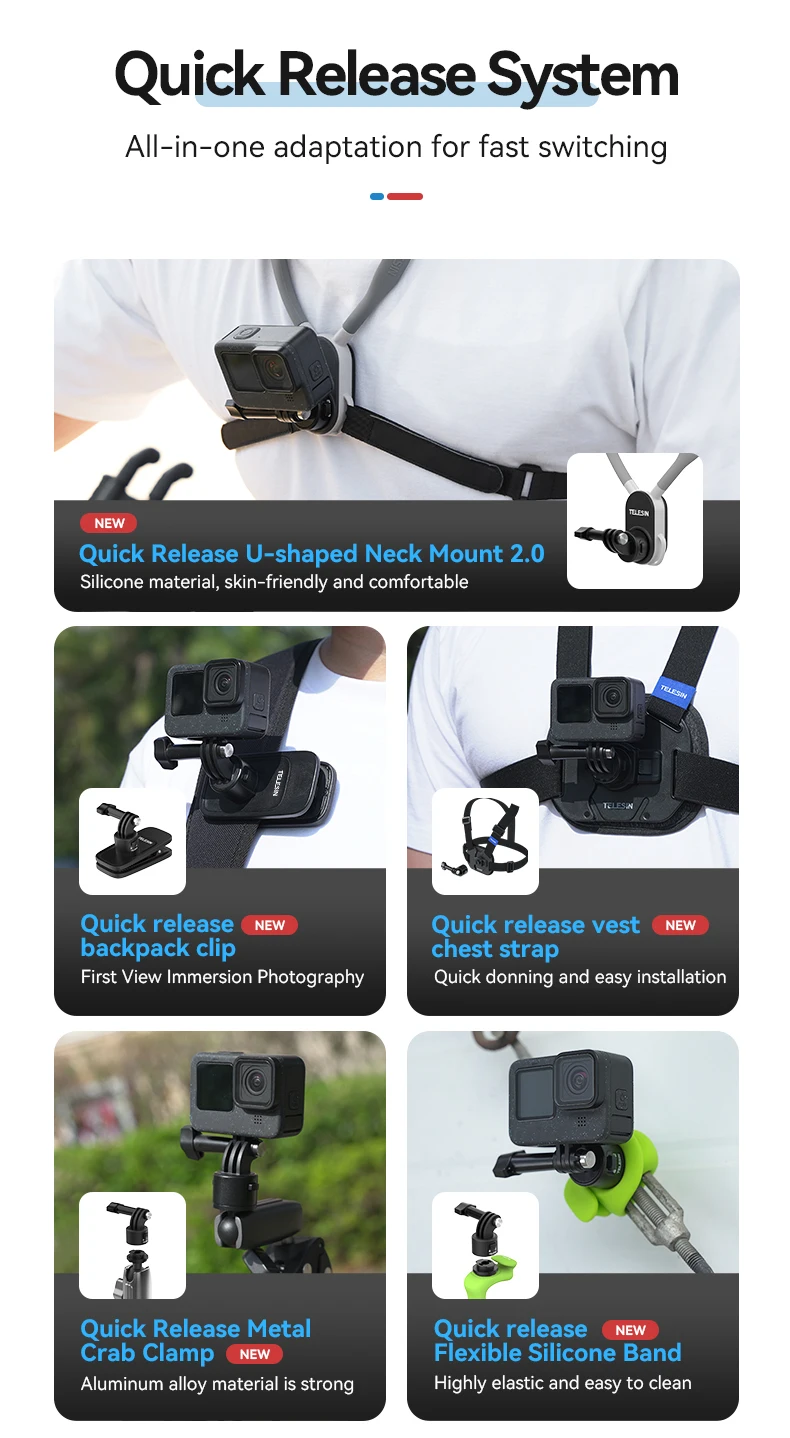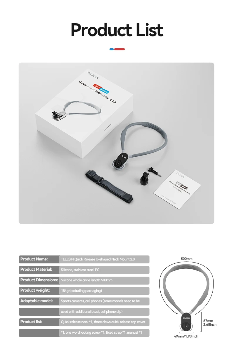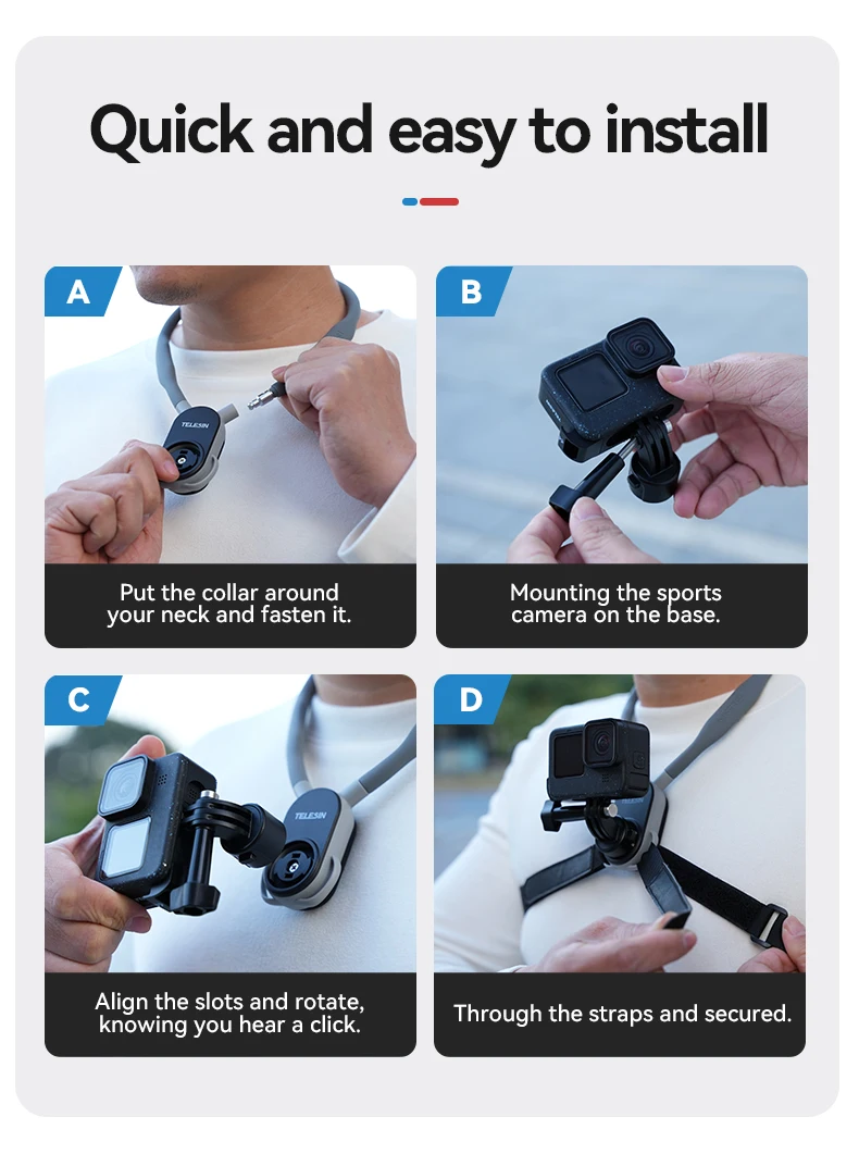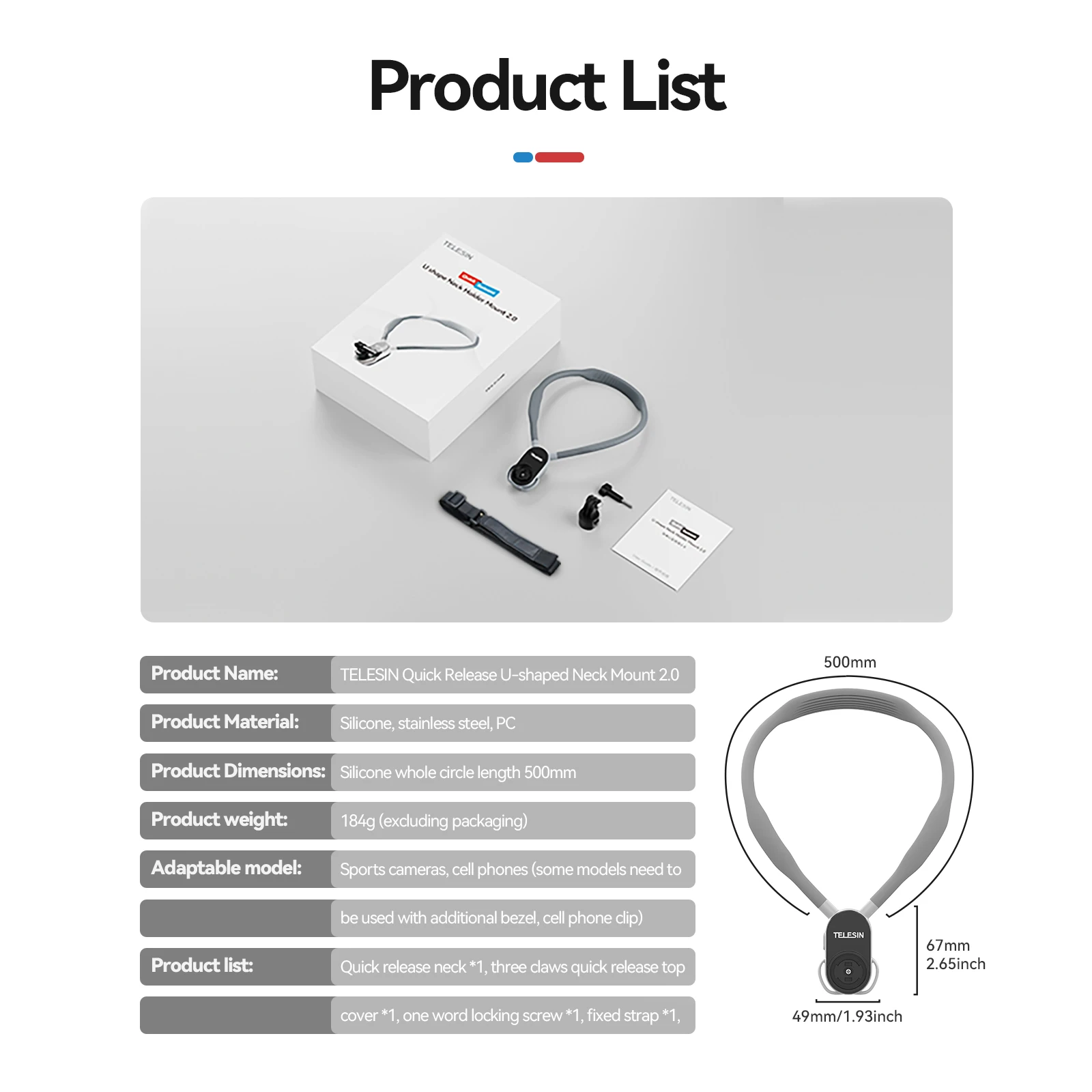 TELESIN 퀵 릴리스 실리콘 넥 마운트 Hero ta360 용 마그네틱 홀드 Osmo 액션 액션 카메라 액세서리