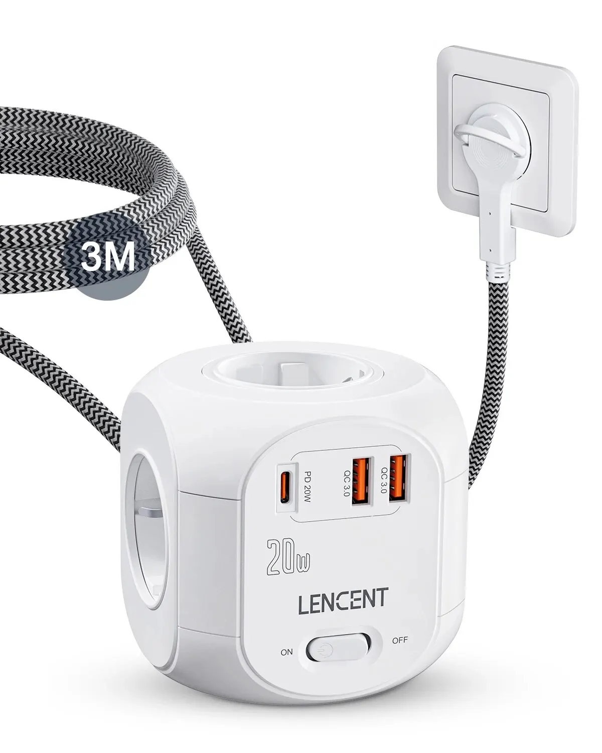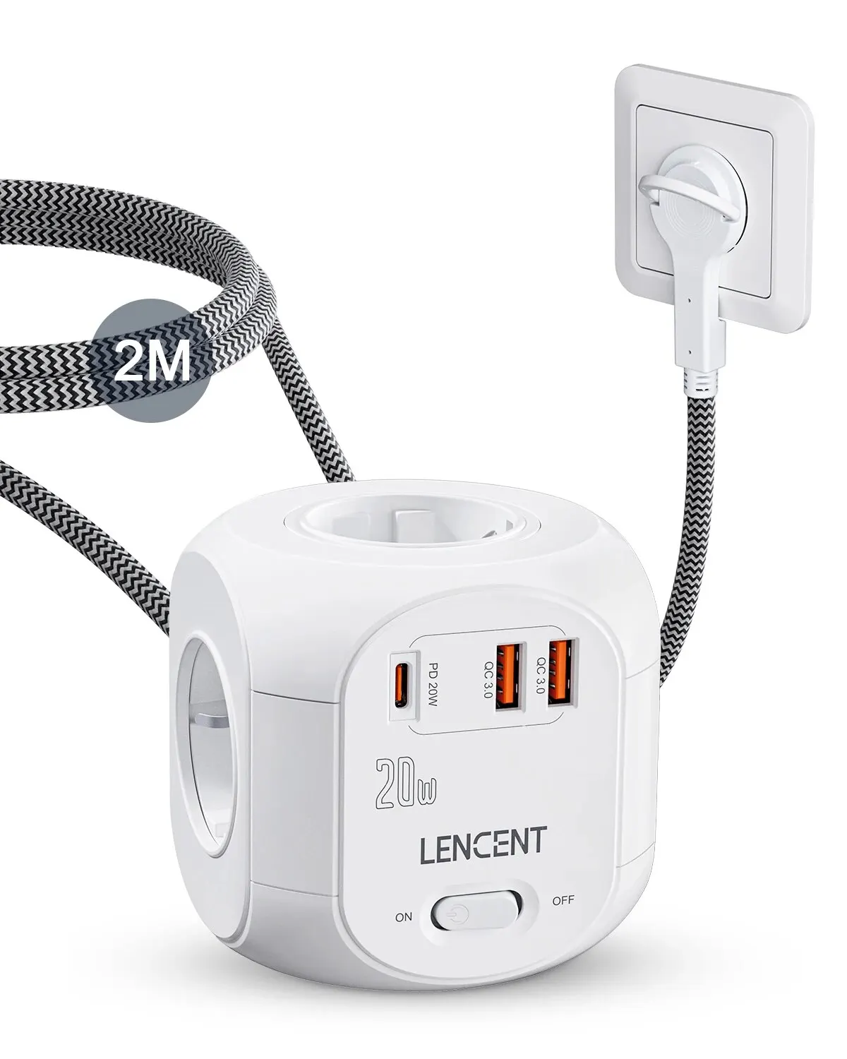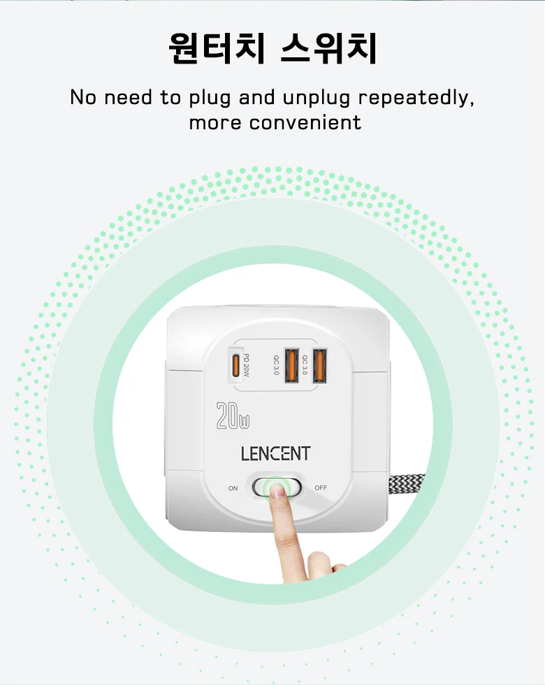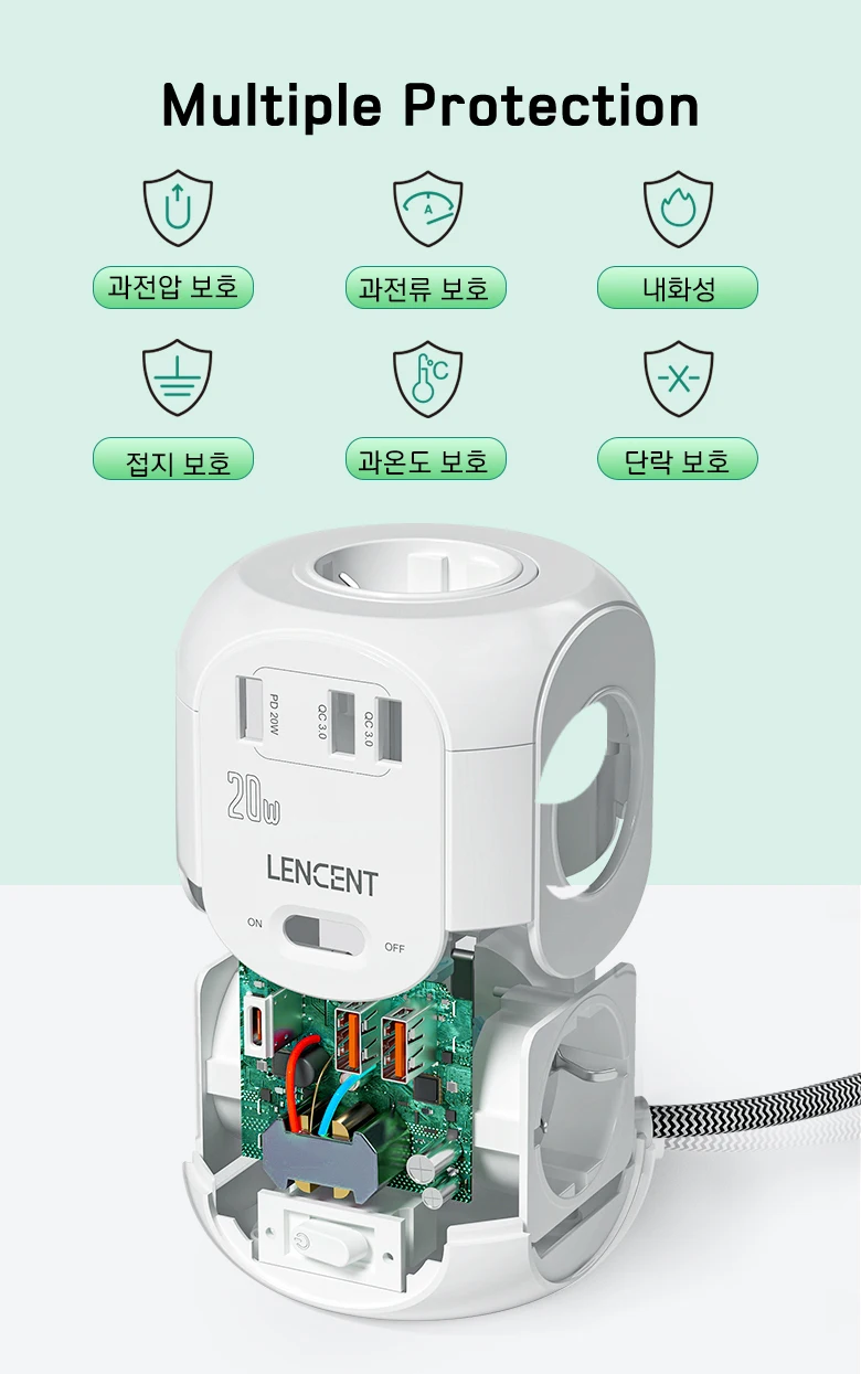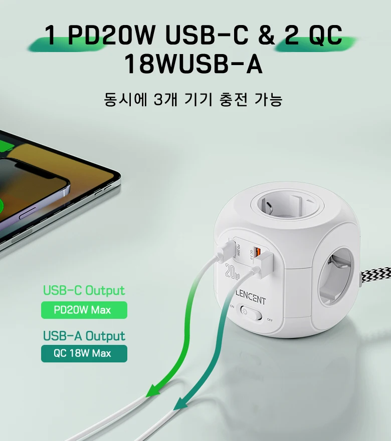 AC 콘센트 4개 USB 포트 2개 Type C 포트 1개가 포함되어 플러그에는 콘센트 4개 QC3 0 USB 포트 2개(최대 18W)_PD20W Type C 포트 1개가 있어 동시에 여러 장치에 사용 있는 완벽한 조합입니다 같은 시간 예를 들어 컴퓨터 휴대폰 태블릿 USB 포트가 있는 장치 등이 플러그는 매우 조용하고 소음이 없습니다