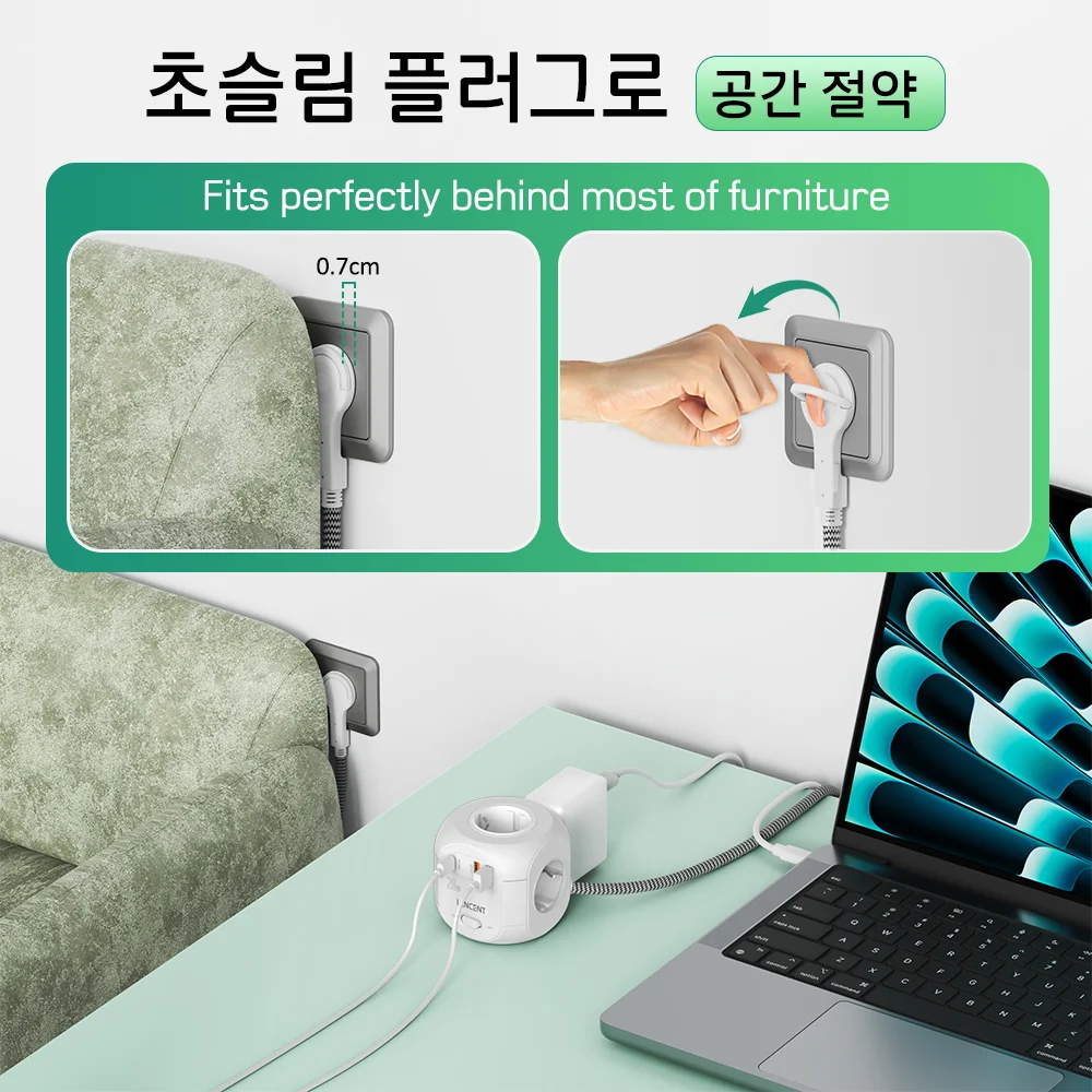 0 7cm의 초박형 플러그입니다 플랫 플러그는 기존 플러그보다 훨씬 얇고 모든 가구 뒤에 쉽게 숨길 수 있어 작은 공간에도 쉽게 적응 편조 전원 케이블은 쉽게 변형되지 않고 내구성이 뛰어나며 다른 기존 전원 케이블보다 안전 스위치가 있는 여러 플러그를 사용하여 에너지를 절약 도