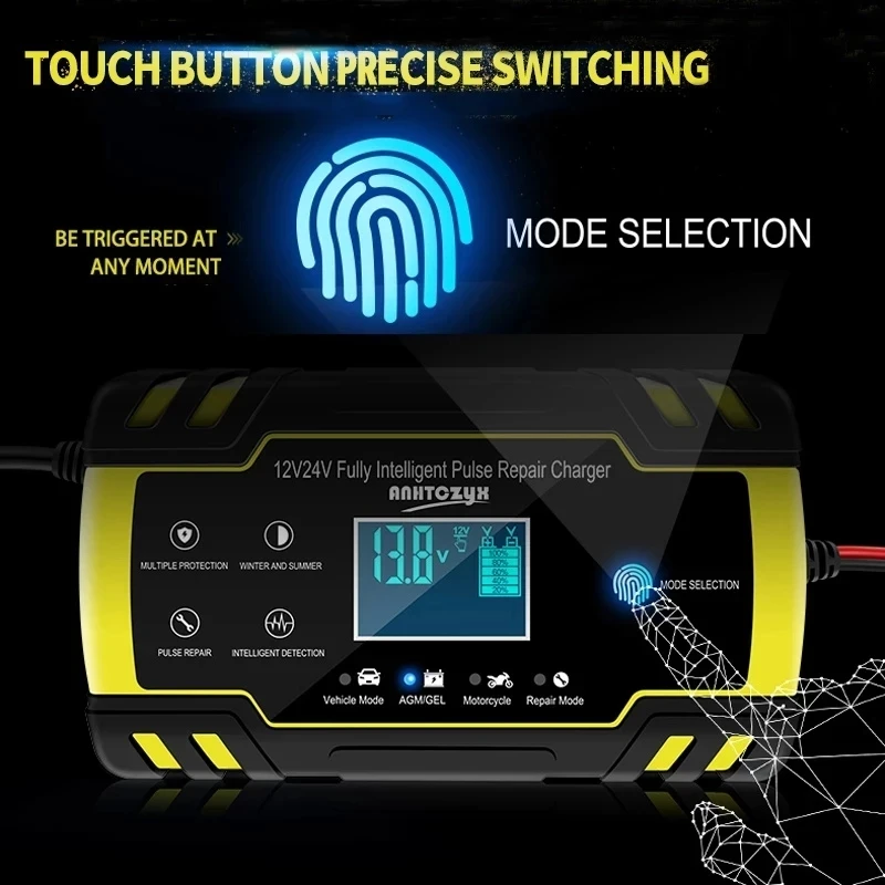 12V/8A 24V/4A A 젤 자동차 오토바이 트럭 납산 배터리 100AH 120AH 150AH 용 스마트 자동 수리 충전기 LCD 디스플레이
