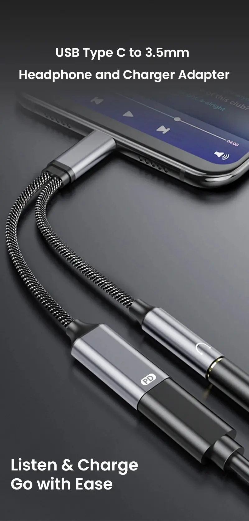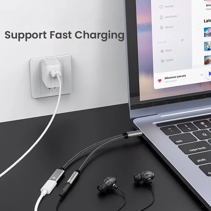 2 in 1 어댑터 USB C 3 5mm 오디오 충전기 어댑터로 휴대 전화를 충전하면서 음악을들을 수 이 여러 기능 usb type c 3 5mm 어댑터는 음악 을 지원하고 대부분의 USB C 장치를 호출하며 장치를 빠르게 충전하면서 볼륨 제어를 지원