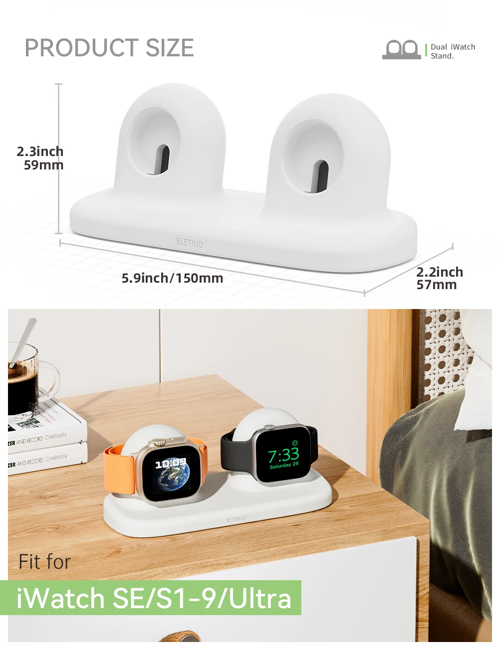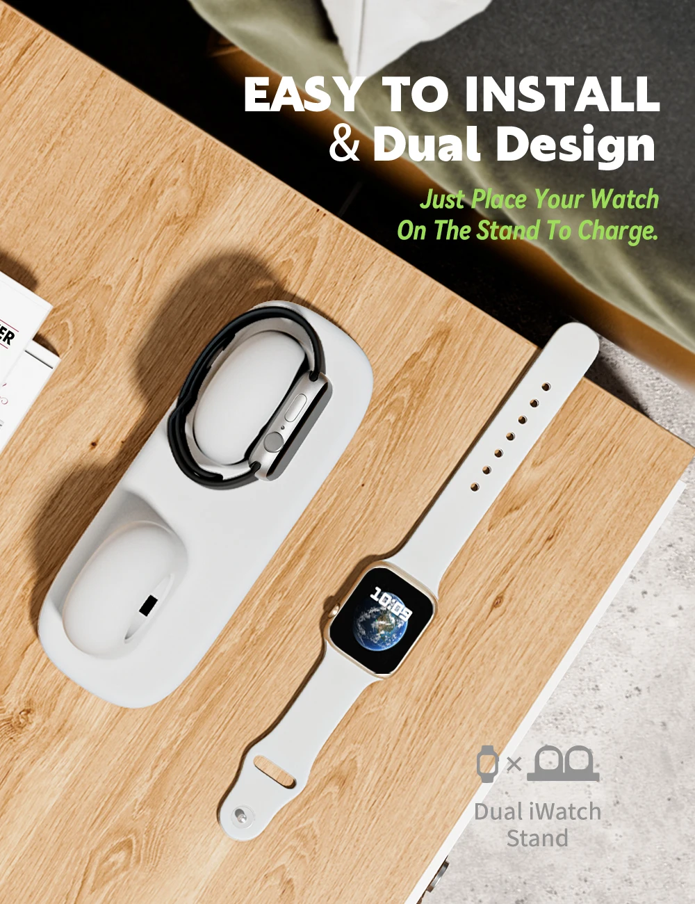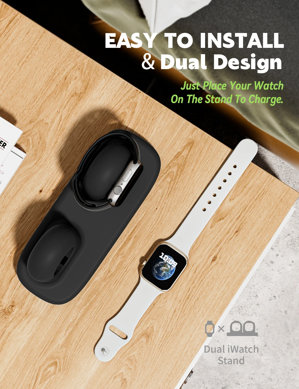 Watch 시리즈 49/45/44/42/41/40/38mm iWatch 2/ 10/9/8/7/6/SE2/SE/5/4/3/2/1과 호환되는 듀얼 충전기