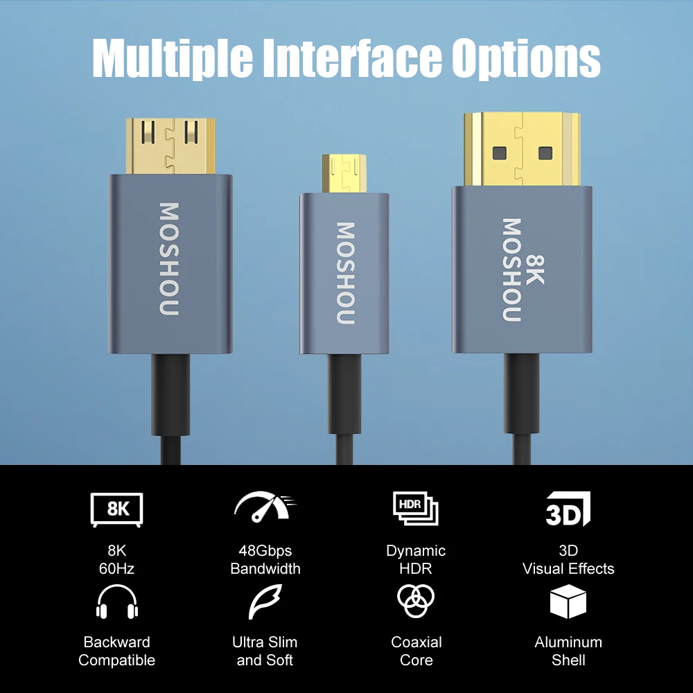 OU 8K HD 2 1 케이블은 8K 60Hz 4K 120Hz/60Hz 2K 144Hz를 지원하며 HD 2 1 표준을 갖춘 모든 장치에 하며 이전 HD 2 0 1 4 1 3 1 2 및 1 1과 역호환됩니다 최신 기능을 위한 48Gbps 대역폭으로 대형 화면에서 초고화질의 궁극적인 경험을 즐겨보세요