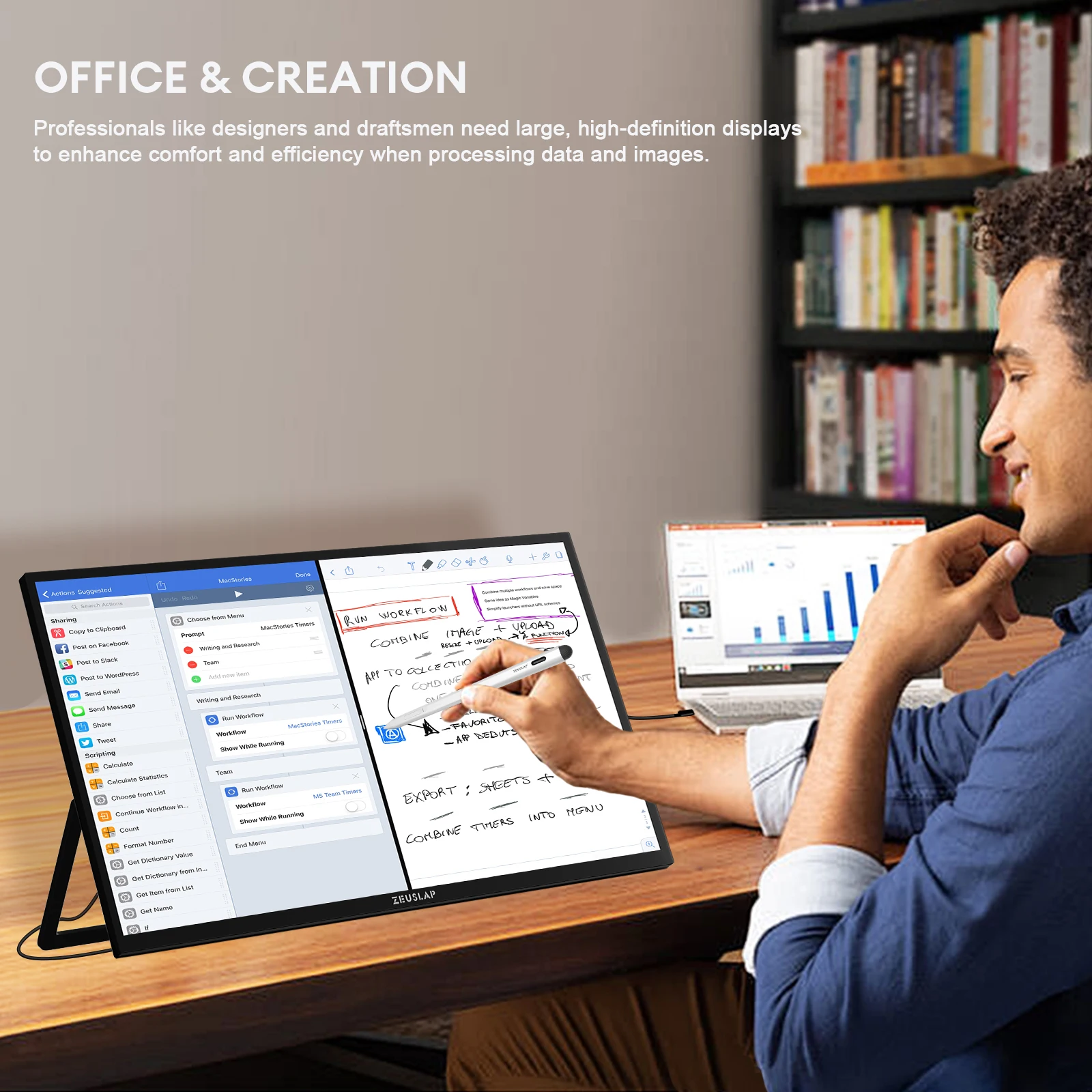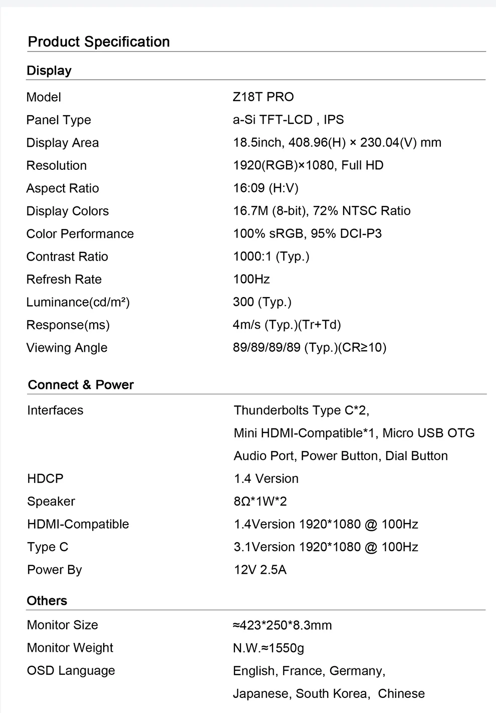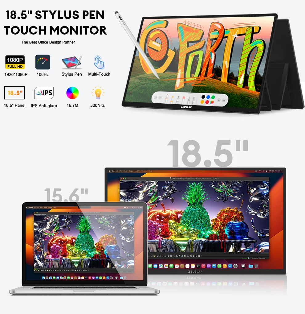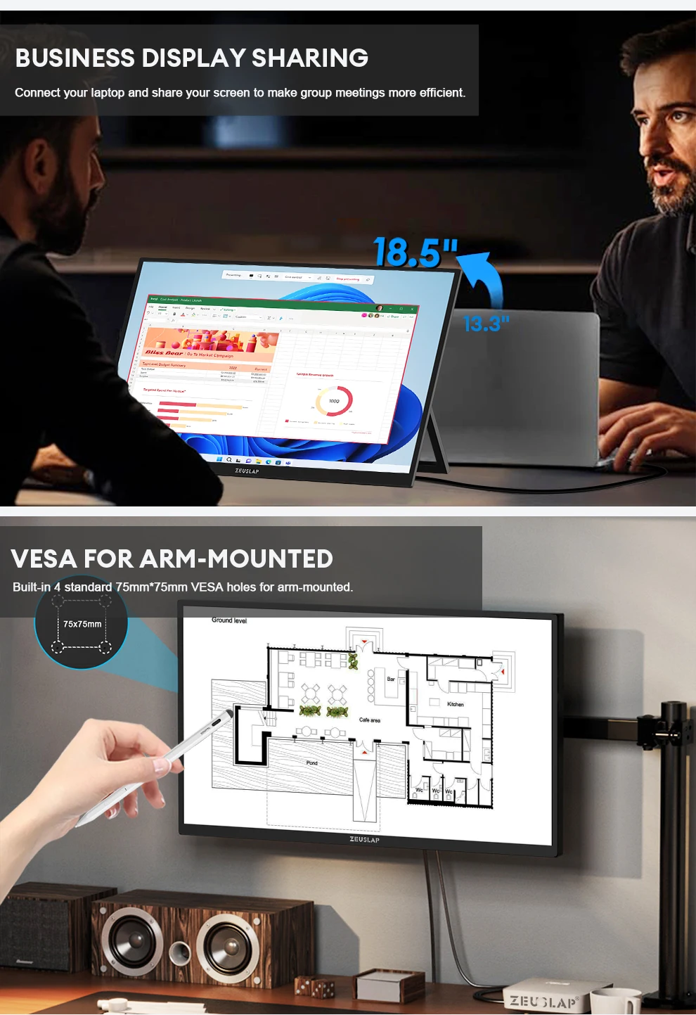 [정전식 터치와 호환]내장된 18 5인치 1920 1080P 풀 HD 해상도 IPS 대형 화면은 전화 또는 Windows 시스템에서 10포인트 정전식 터치 기능을 갖추고 Mac OS에서는 5포인트 터치 기능을 갖추고 있어 비즈니스 작업에 더욱 효과적입니다