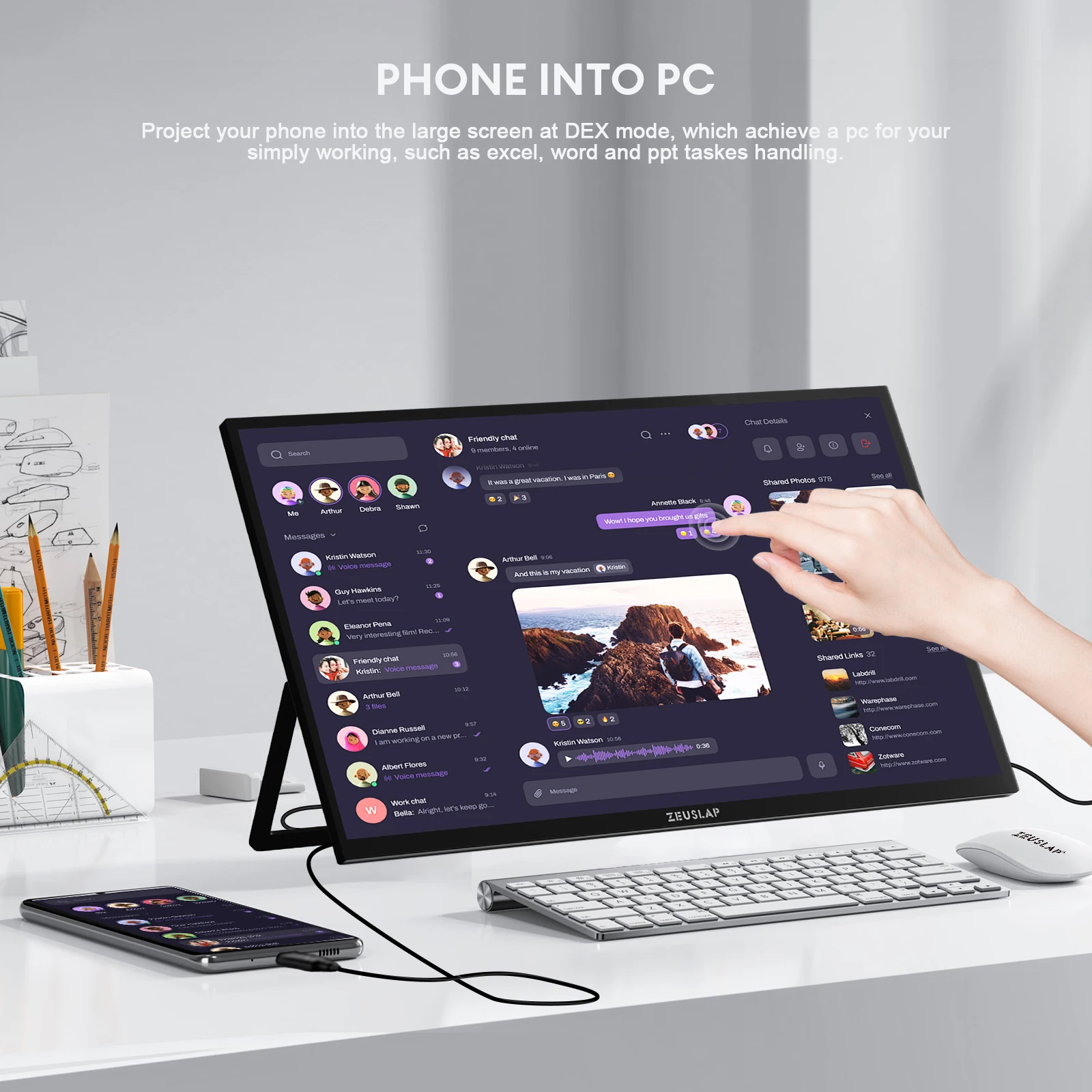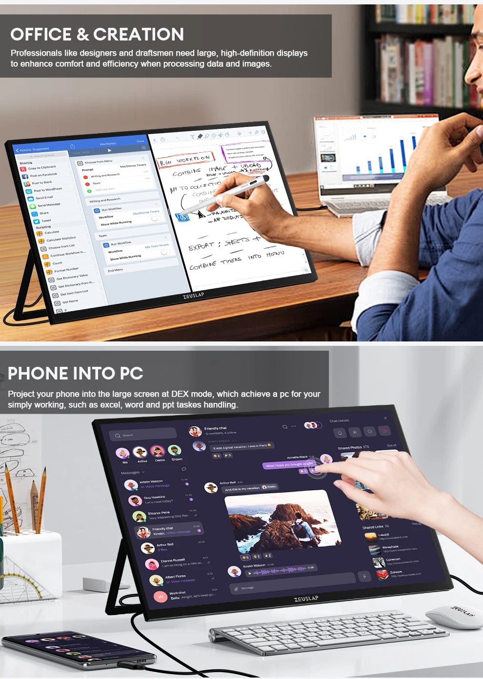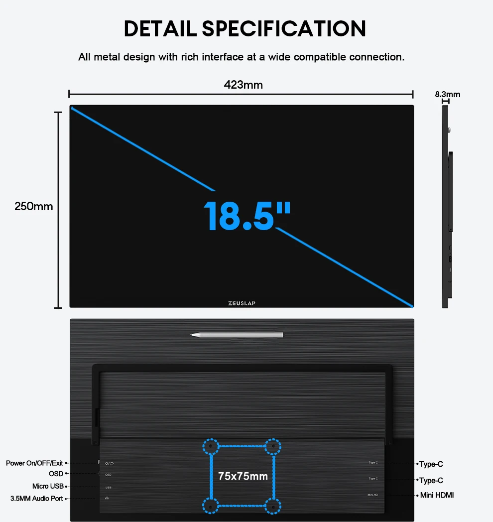 [정전식 터치와 호환]내장된 18 5인치 1920 1080P 풀 HD 해상도 IPS 대형 화면은 전화 또는 Windows 시스템에서 10포인트 정전식 터치 기능을 갖추고 Mac OS에서는 5포인트 터치 기능을 갖추고 있어 비즈니스 작업에 더욱 효과적입니다