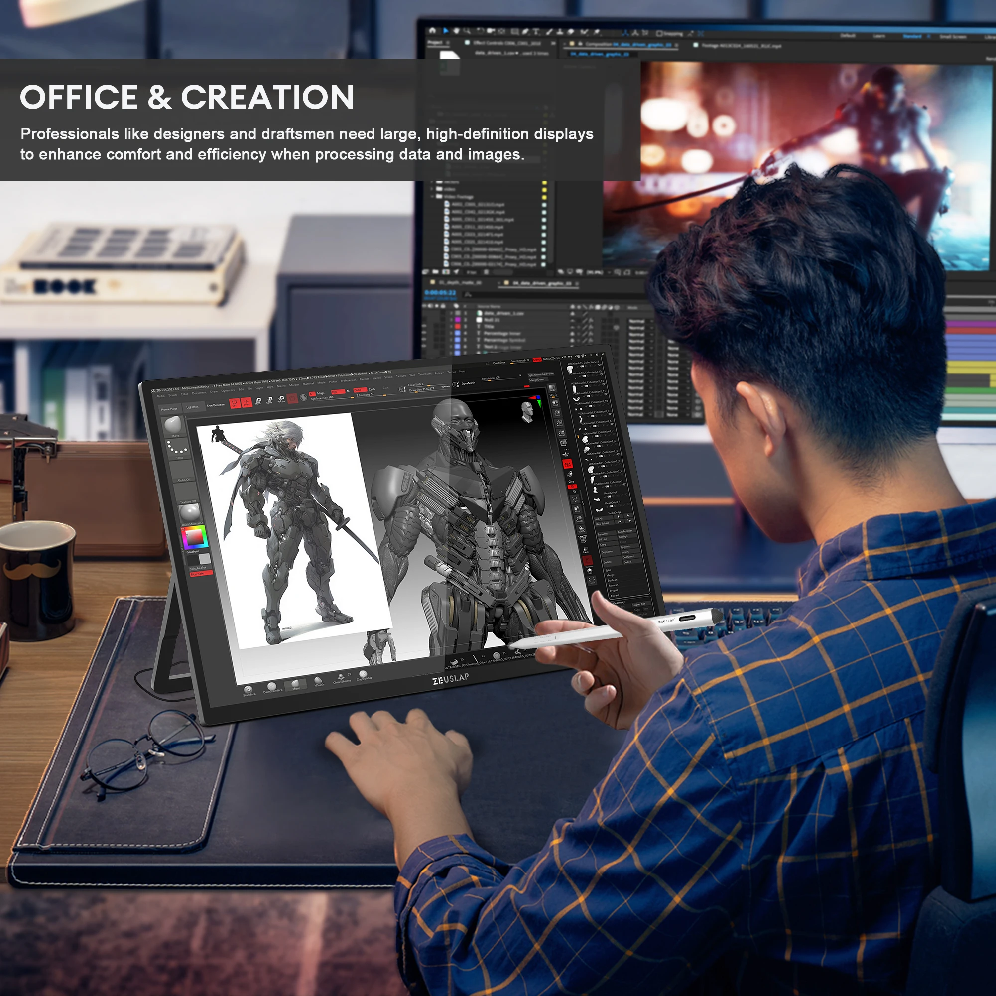 ZEUSLAP 22 QHD 스타일러스 펜 터치 기능 PC 노트북 용 눈부심 방지 표면 데스크탑 모니터 두 번째 화면