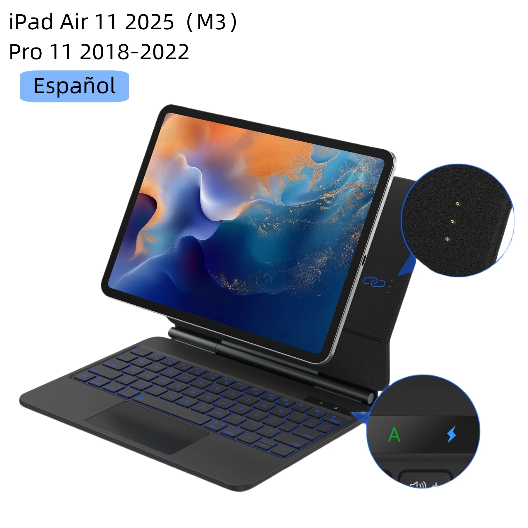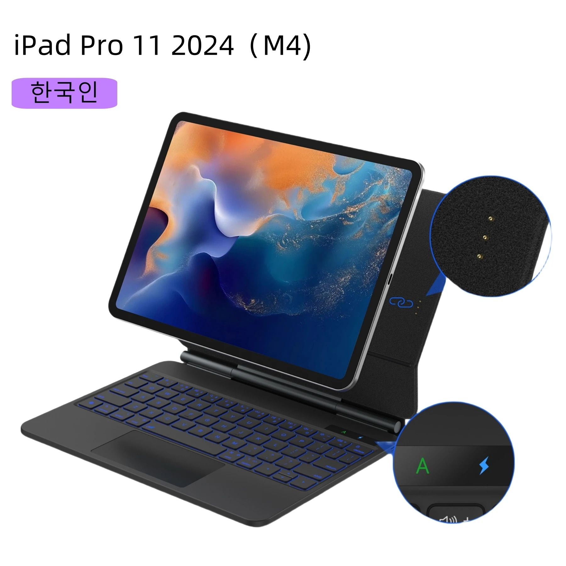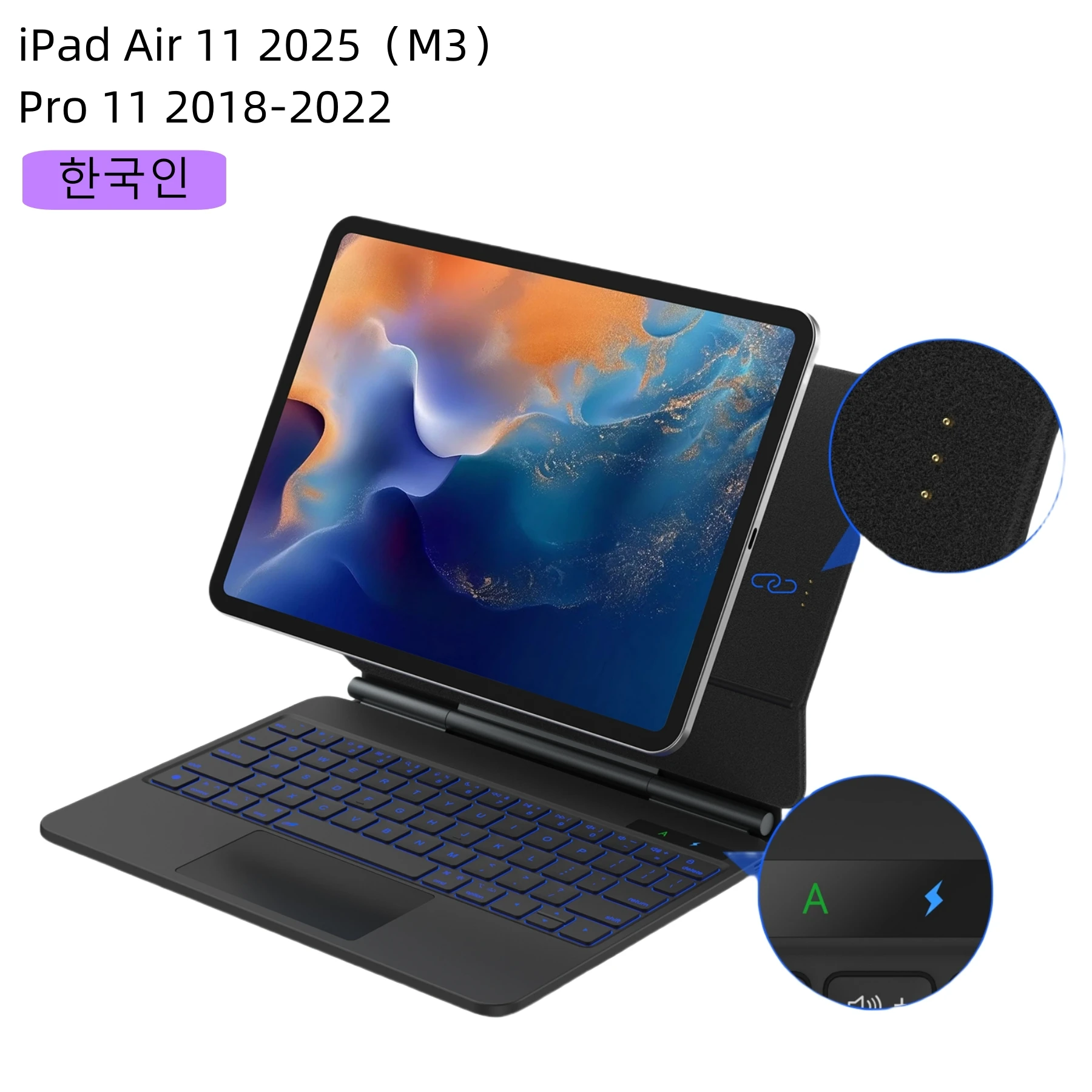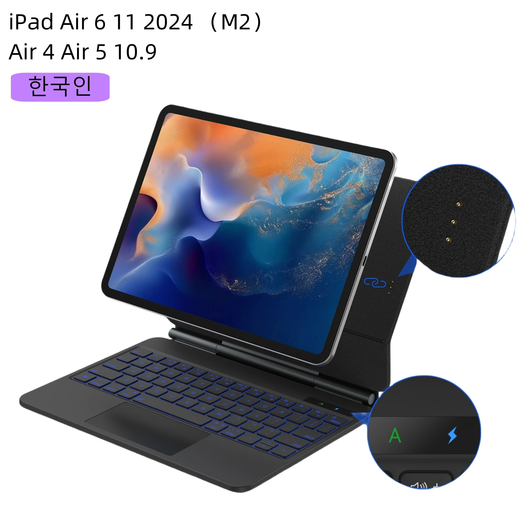 120도 편안한 시야각 이 휴대용 키보드 케이스로 업무와 오락 모두 활용이 가능 3가지 용도 모드를 제공 만능 안전성을 위한 완벽한 보호 케이스 터치패드가 내장된 전 기능 키보드 책임감 있고 조용한 조작이 가능한 가위 발 구조와 영화 관찰을 위한 완벽한 시야각을 위한 태블릿 스탠드