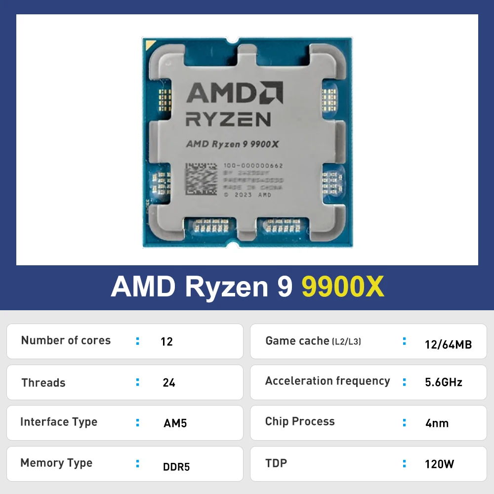 AMD R9 9900X Ryzen 9 9900x 5 6 GHz 9000 시리즈 DDR5 12코어 24스레드 L3 64M 게임 캐시 소켓 AM5 TDP 120W 새 제품이지만 팬 없음