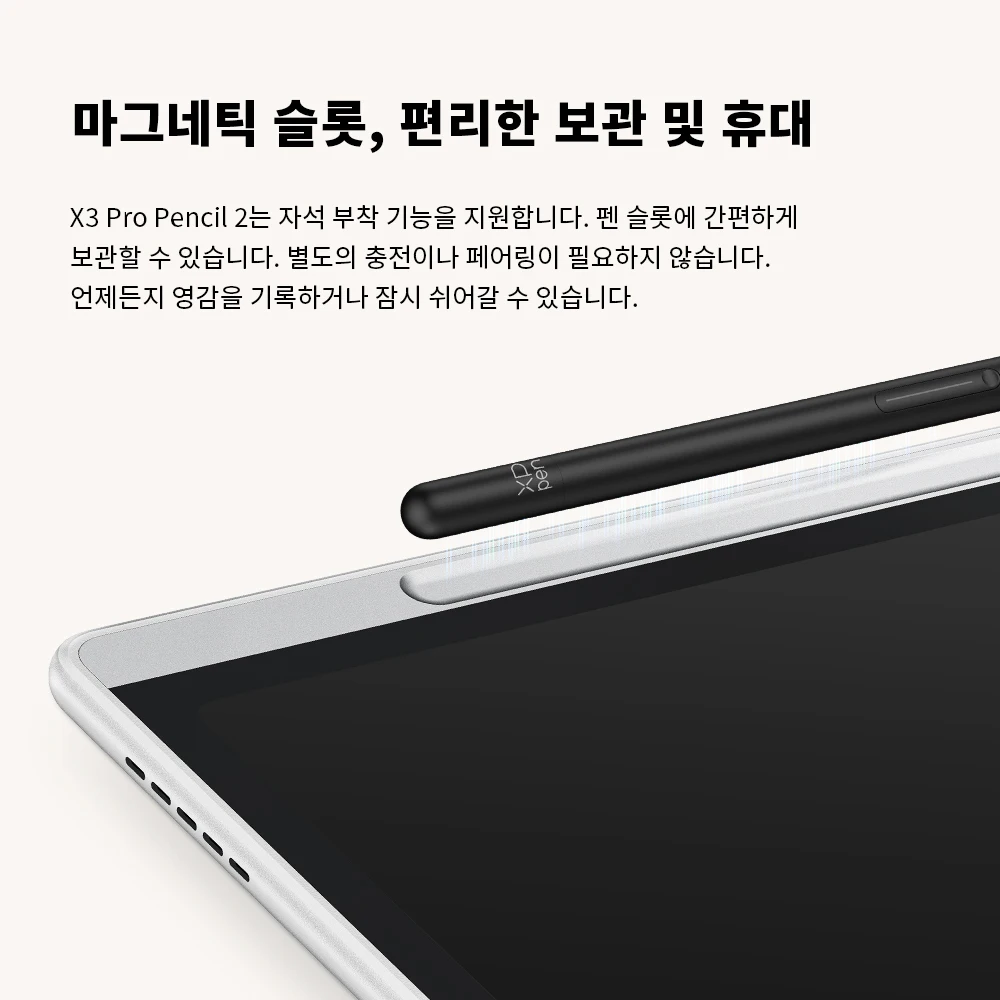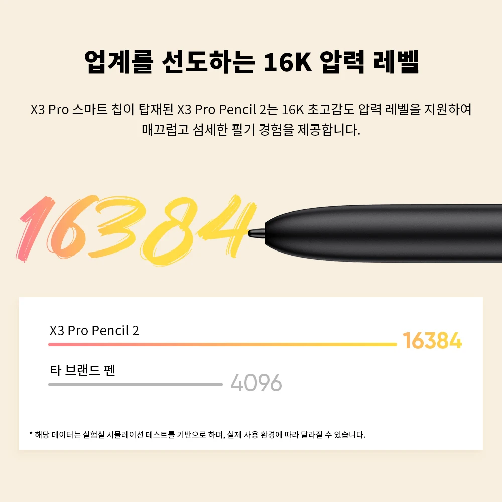 X3 스마트 칩이 탑재된 X3 Pencil 2는 16K 초고감도 압력 레벨을 지원하여 매끄럽고 섬세한 필기 경험을 제공