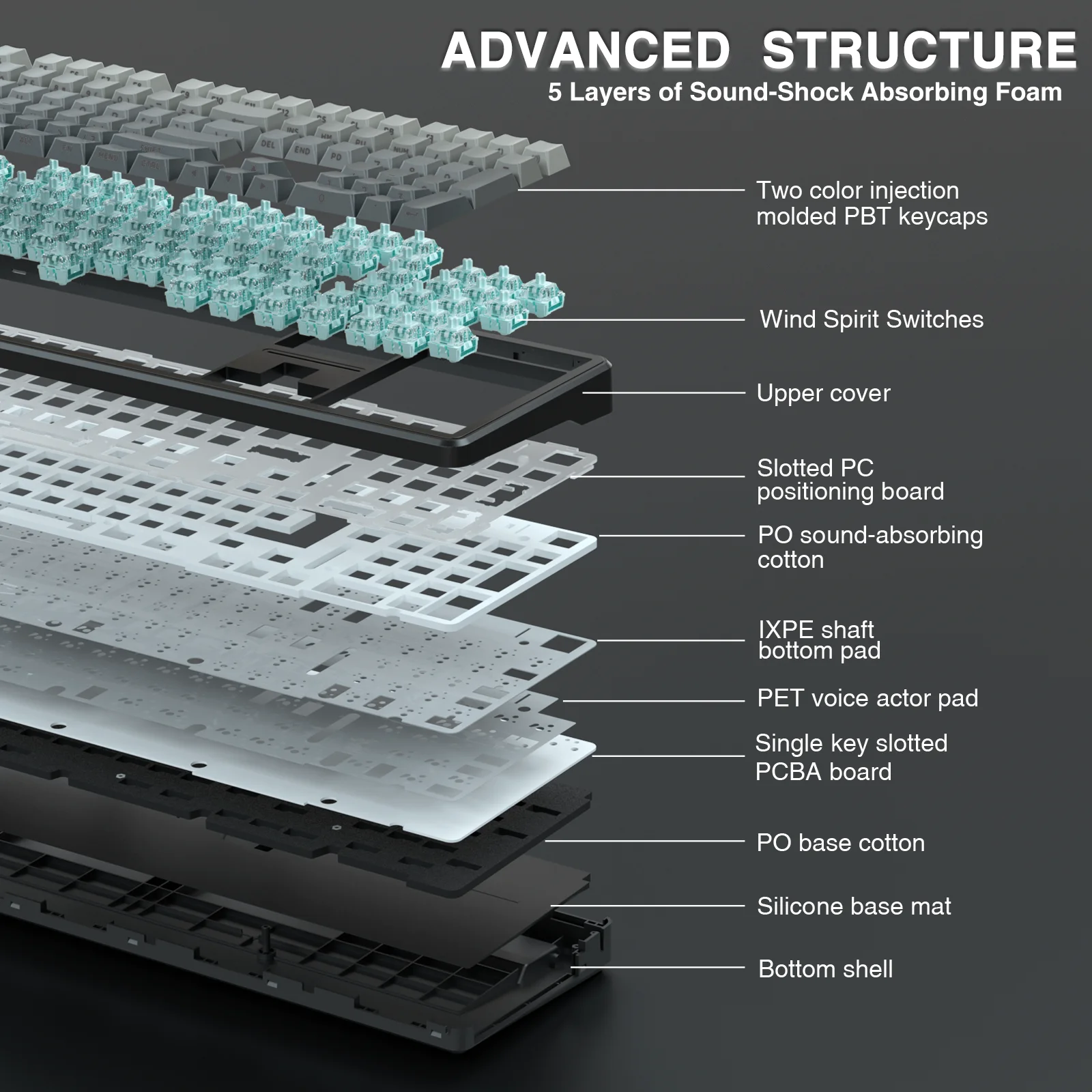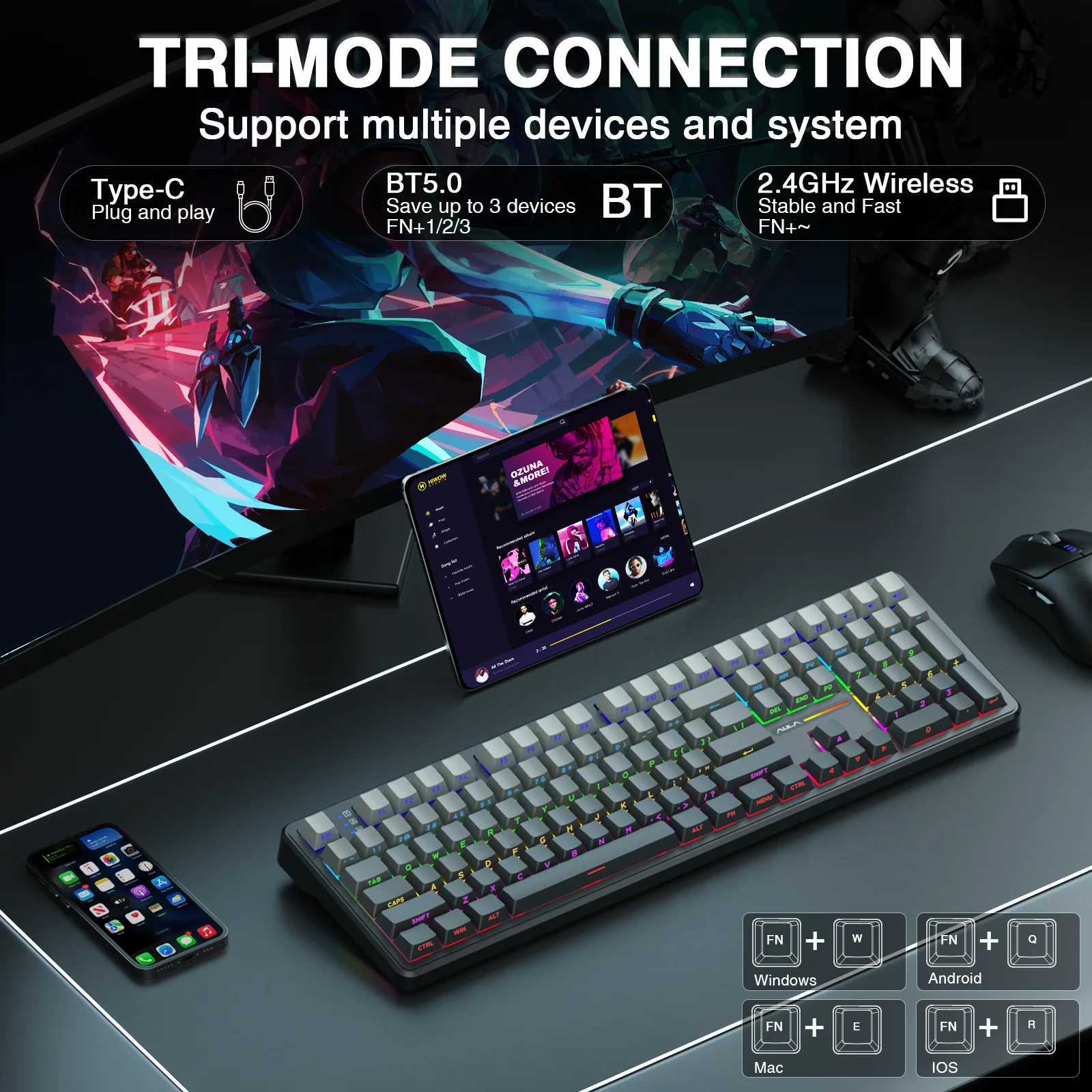 F108 Machanical 키보드 Bluetooth 5 0/2 4G 무선/유선 개스킷 장착 게임용 키보드 108 키 키보드