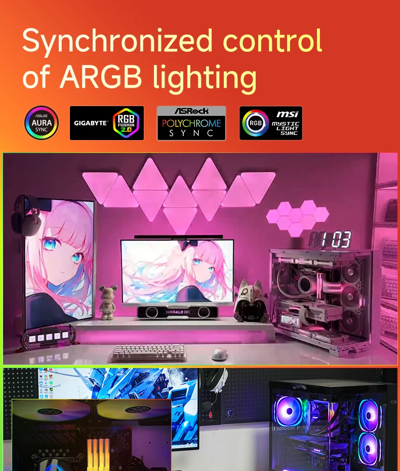 주류 마더보드에 맞게 조정 가능한 동기화 조명