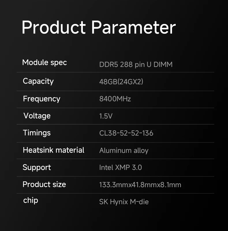 | support | 8400MHz only supports Z890 or above motherboards, Ultra processors |