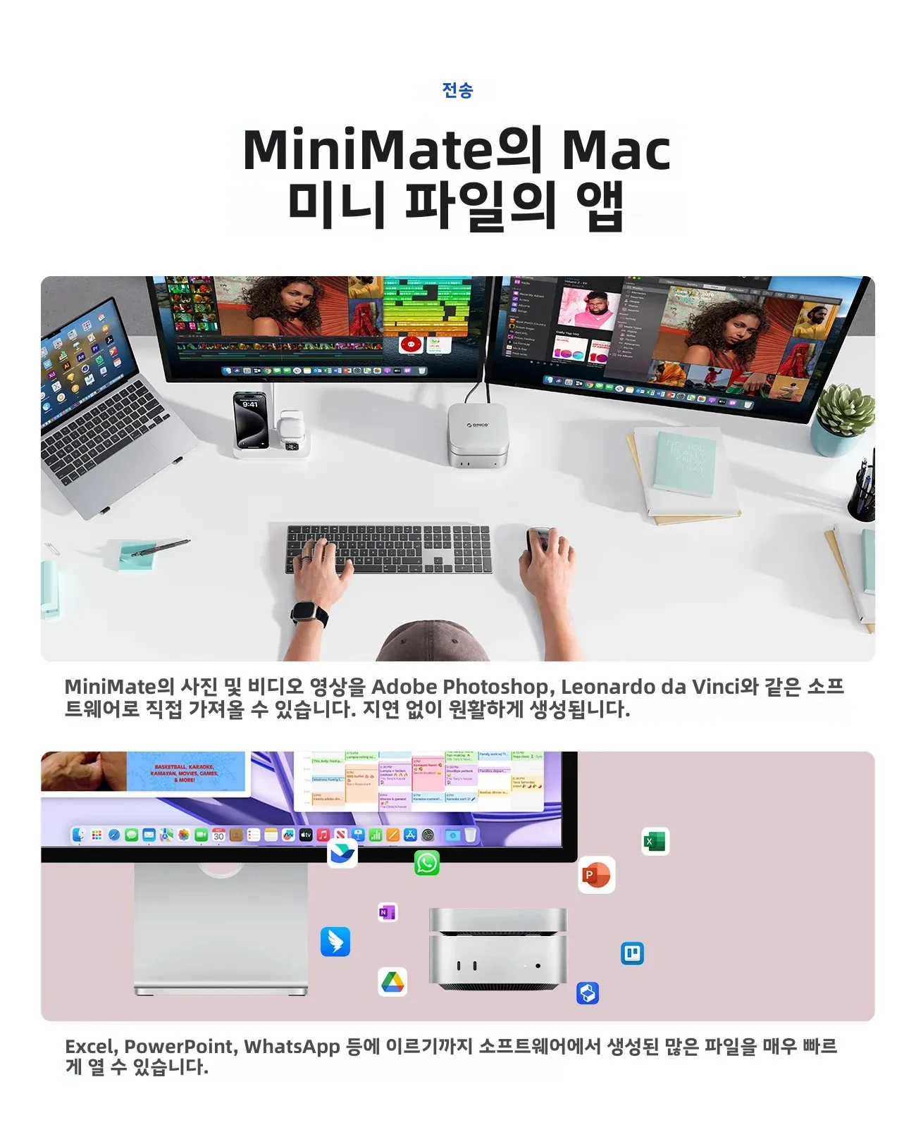 niMate M4 는 새로운 Mac ni 전용으로 설계된 외장 SSD입니다 이는 의 새 제품에 빠른 SSD 스 지를 쉽게 추가 있는 방법이며 그래픽 디자이너 비디오 편집자 콘텐츠 제작자 또는 많은 양의 데이터를 생성하는 모든 사람에게 이상적인 장치입니다