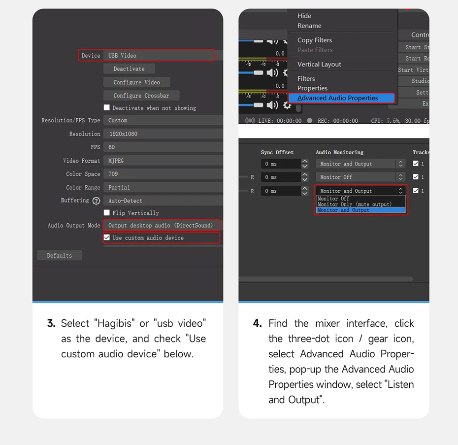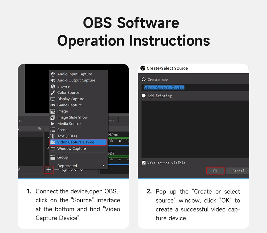 3 5mm 마이크 및 오디오 입력/출력 포트 sp 오디오 비디오 캡처 카드는 3 5mm 마이크 및 오디오 입력/출력 포트를 제공하므로 비디오 캡처 장치를 연결하여 음성을 스트리밍하고 미리보기 편집 및 저장을 위해 음성을 셋이나 마이크를 삽입한 후 OBS에 오디오 입력 캡처를 추가해야