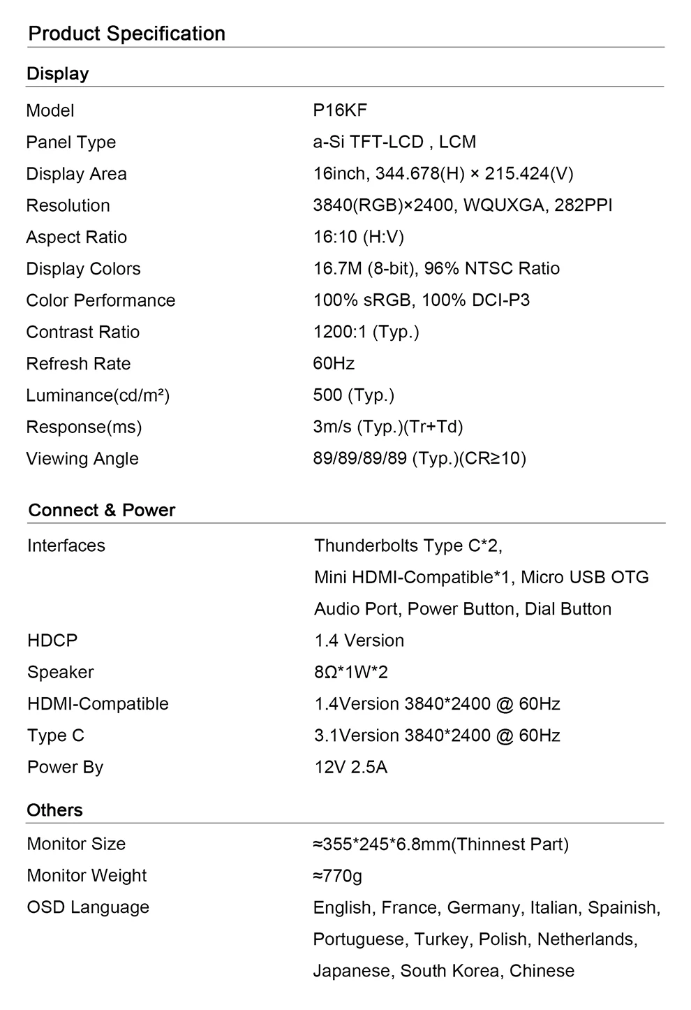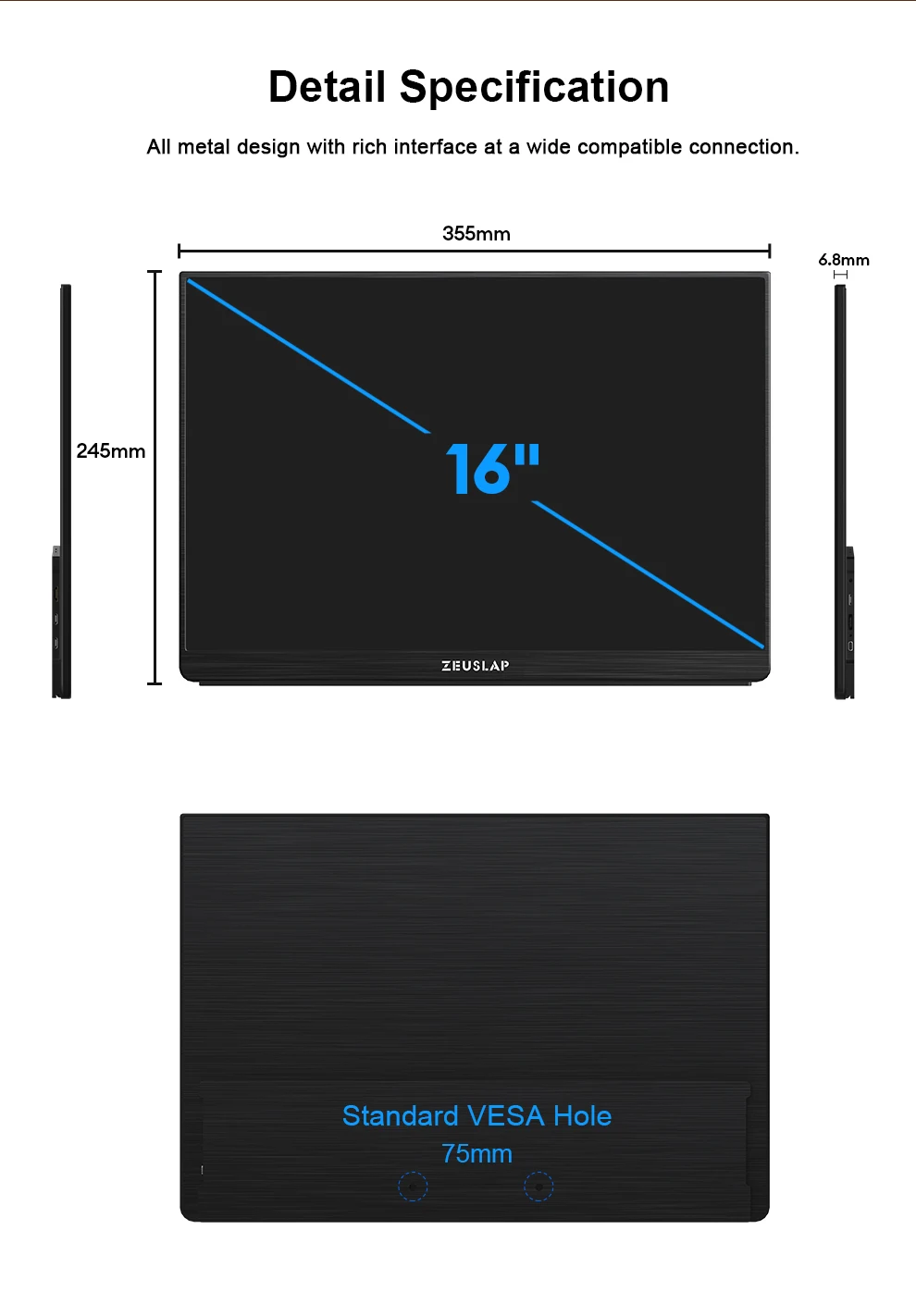 [4K UHD 16 10]ZEUSLAP P16KF는 16 10 노트북 디자인의 메인 패션 디스플레이인 16인치 IPS 패널을 탑재한 UHD 해상도 3840 2400P를 갖췄다