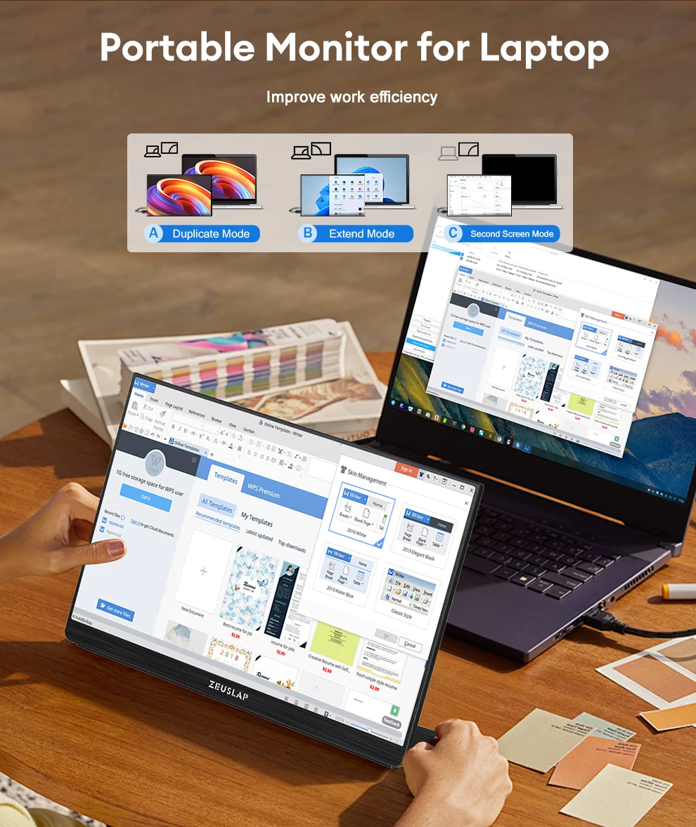 [접이식 디자인]ZEUSLAP P16KF는 풍경 모드 및 세로 모드에서 모니터 스탠 사용 있는 접이식 뒷면으로 설계되었습니다