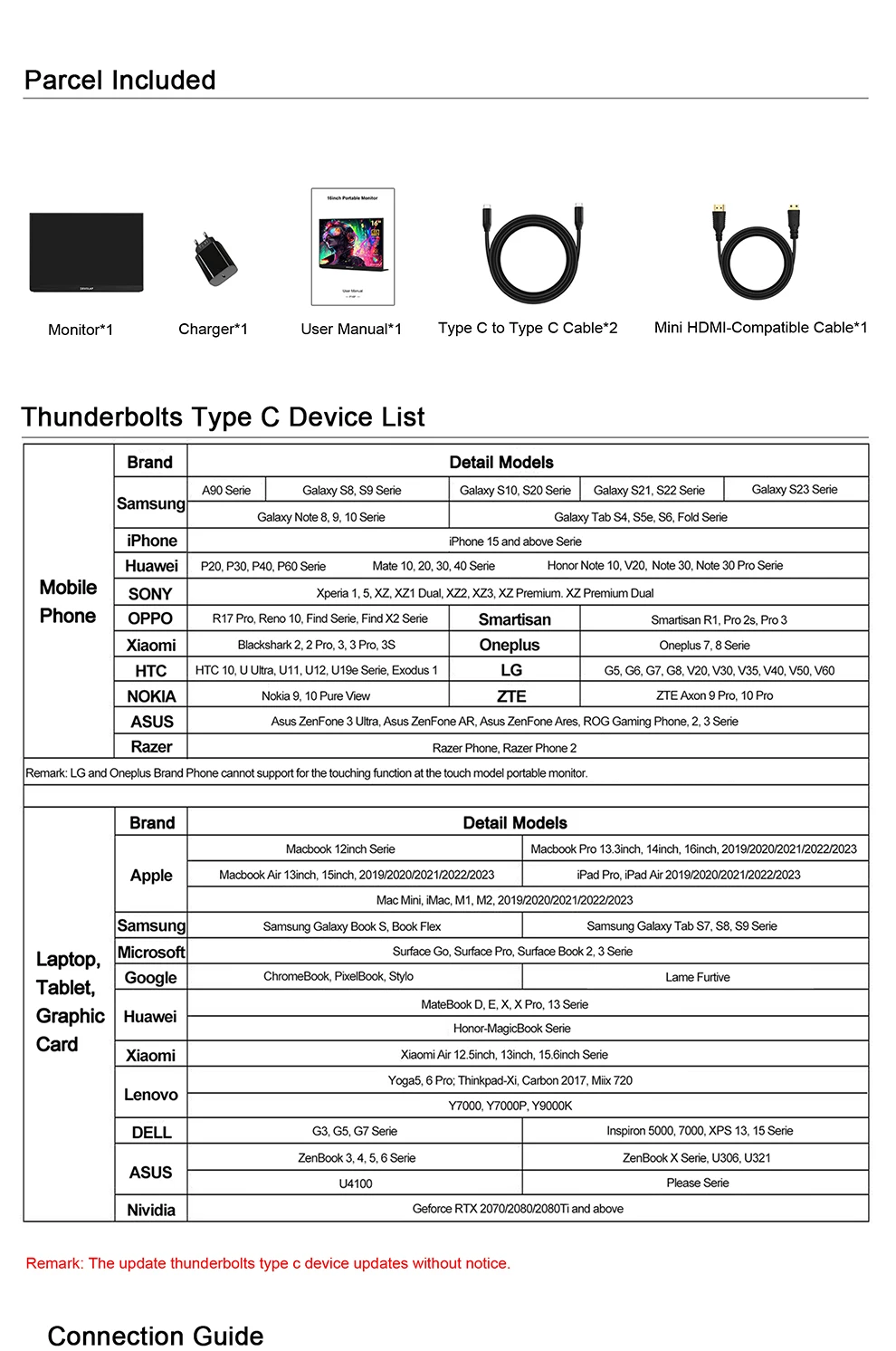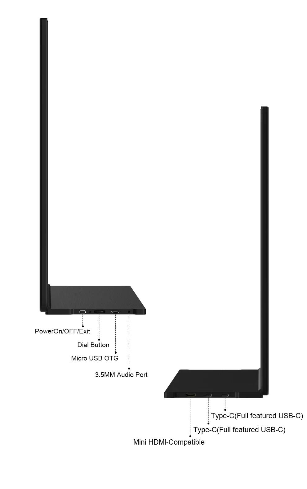 A 첫째 충전기가 포함된 모니터로 전원을 공급 (유형 c pd 포트 연결) 둘째 장치와 모니터를 연결하기 위한 미니 HD 호환 HD 호환 케이블입니다
