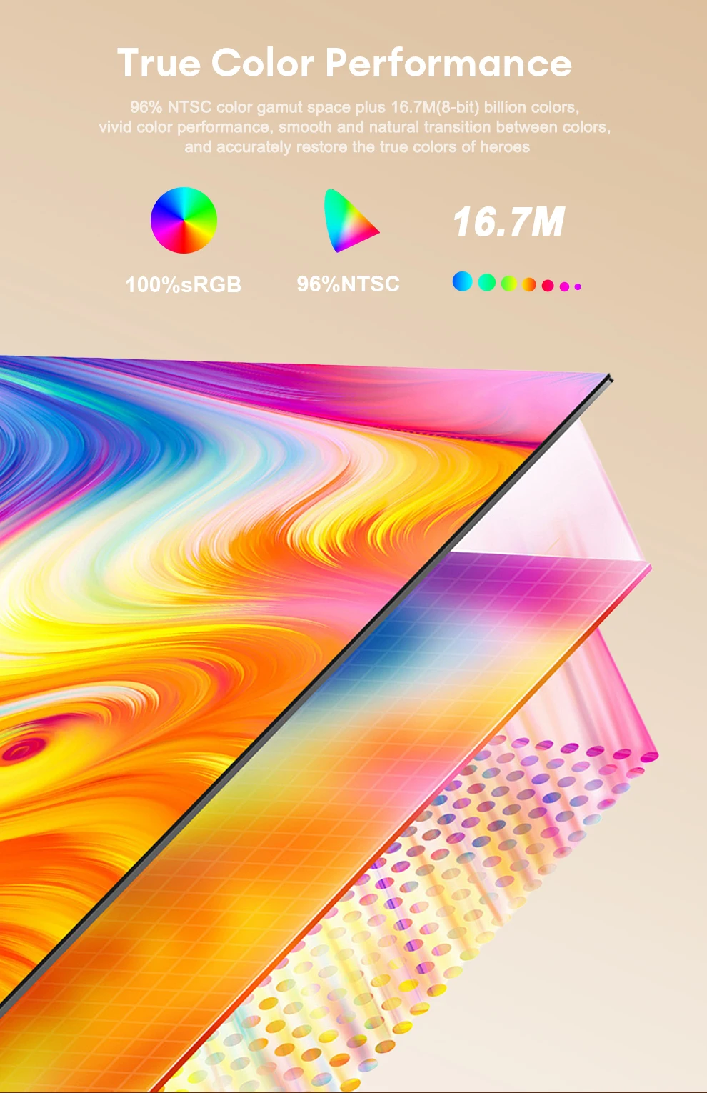 [6가지 디스플레이 모드 OD 가속]ZEUSLAP P16KF는 다양한 상황에 맞게 표준/게임/비디오/텍스트/FPS/RTS의 6가지 디스플레이 모드를 제공하며 게임에서는 OD 가속 기능이 훨씬 더 유용